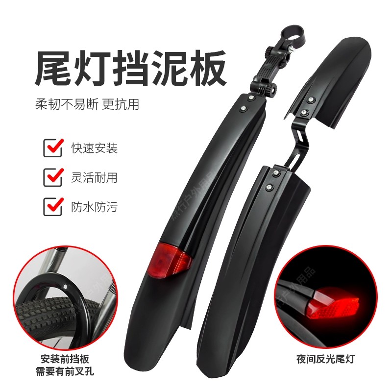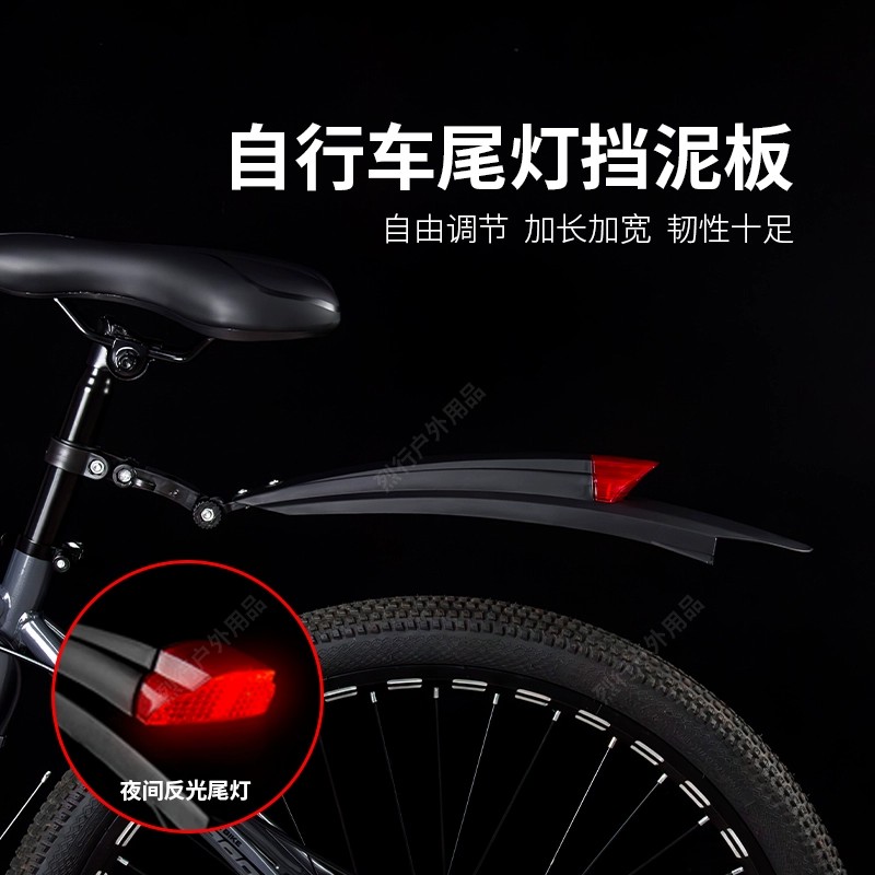 山地车挡泥板自行车前后轮全包式 公路车挡泥板加长加宽带警示尾灯