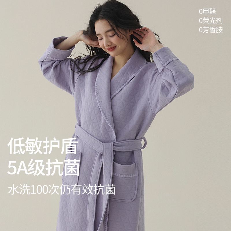 睡袍女秋冬季 保暖空气棉浴袍浴衣家居服套装