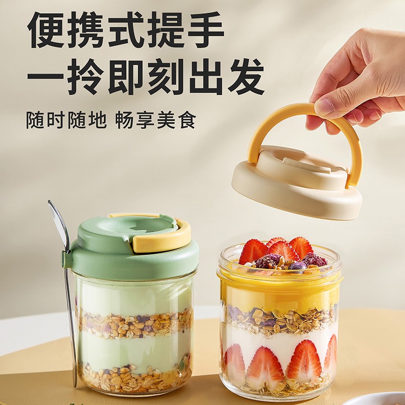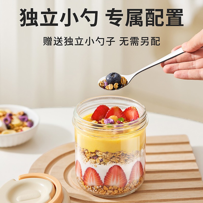 隔夜燕麦杯带盖带勺玻璃酸奶上班便携外带早餐杯子沙拉水果豆浆杯