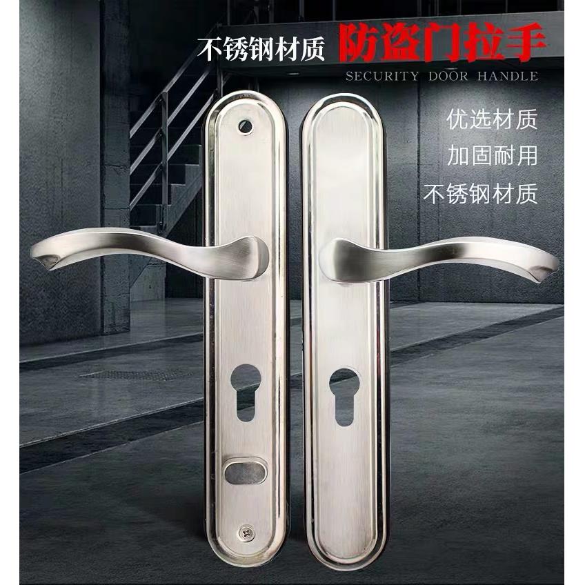 老式 不锈钢面板把手防盗门锁窄面板拉手孔距235大门锁房门板手锁