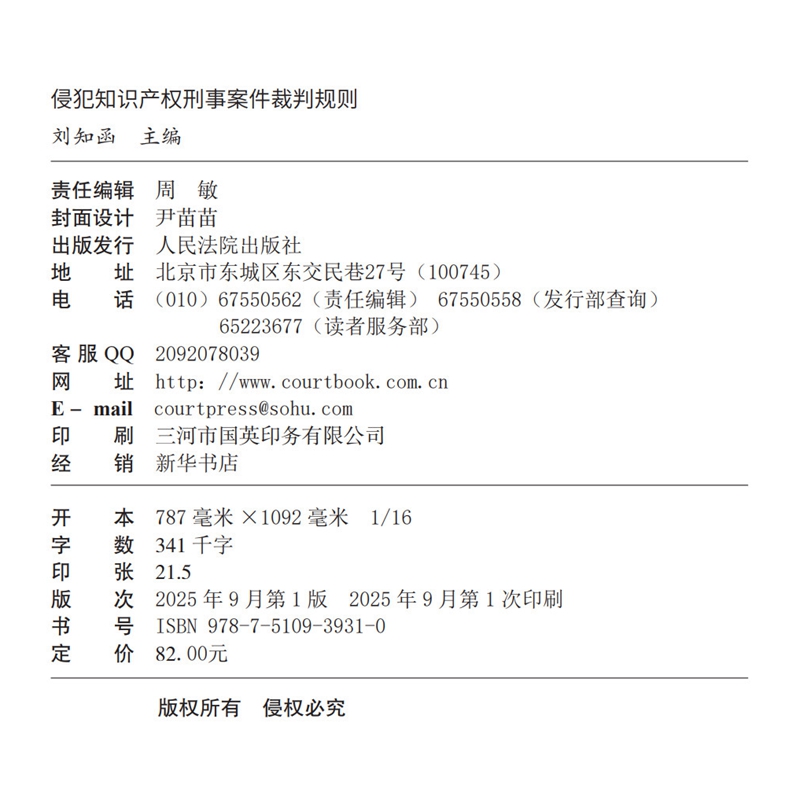 侵犯知识产权刑事案件裁判规则 社 刘知函 人民法院出版 9787510939310 主编 2025新书