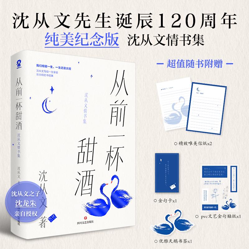 金句卡 pvc文艺金句贴纸 正版 沈从文诞辰120周年纯美纪念版 唯美信纸 从前一杯甜酒:沈从文情书集 畅销书 赠优雅天鹅书签