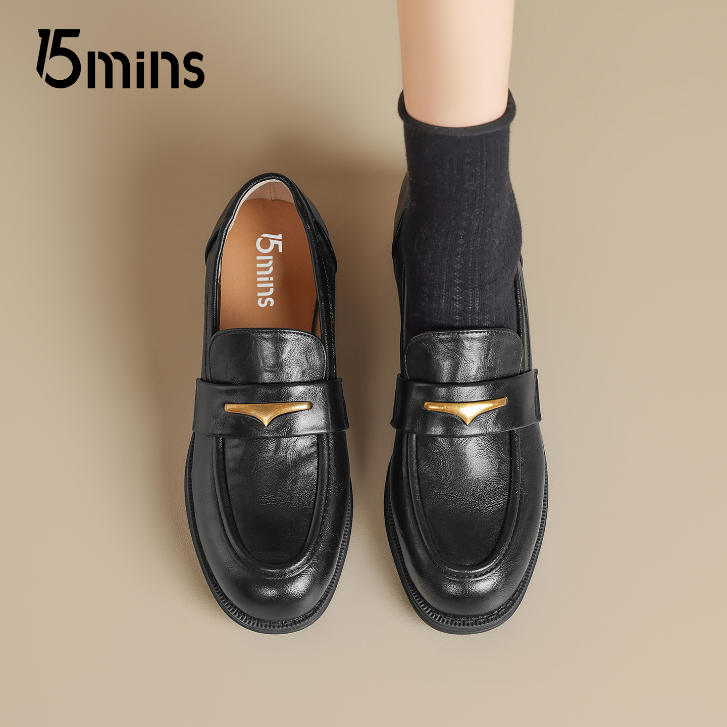 平底浅口单鞋 一脚蹬黑色英伦风小皮鞋 女2025新款 BeauToday乐福鞋