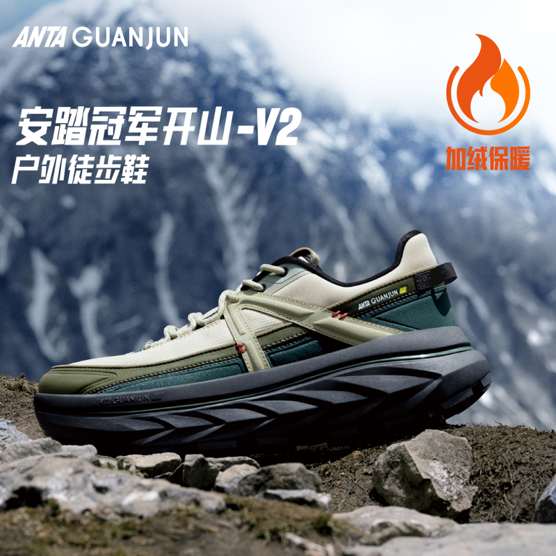 耐磨止滑菁英户外徒步鞋 大棉防风保暖运动鞋 V2中帮 安踏冠军开山