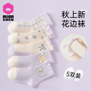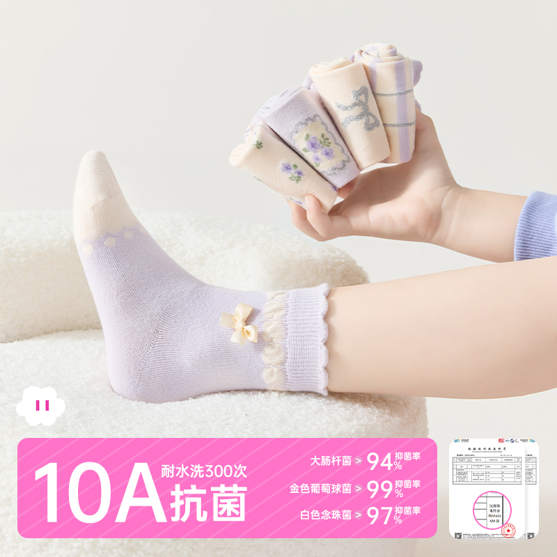 儿童袜子女童春秋款 a类无骨棉袜女童宝宝中筒袜可爱女孩花边童袜