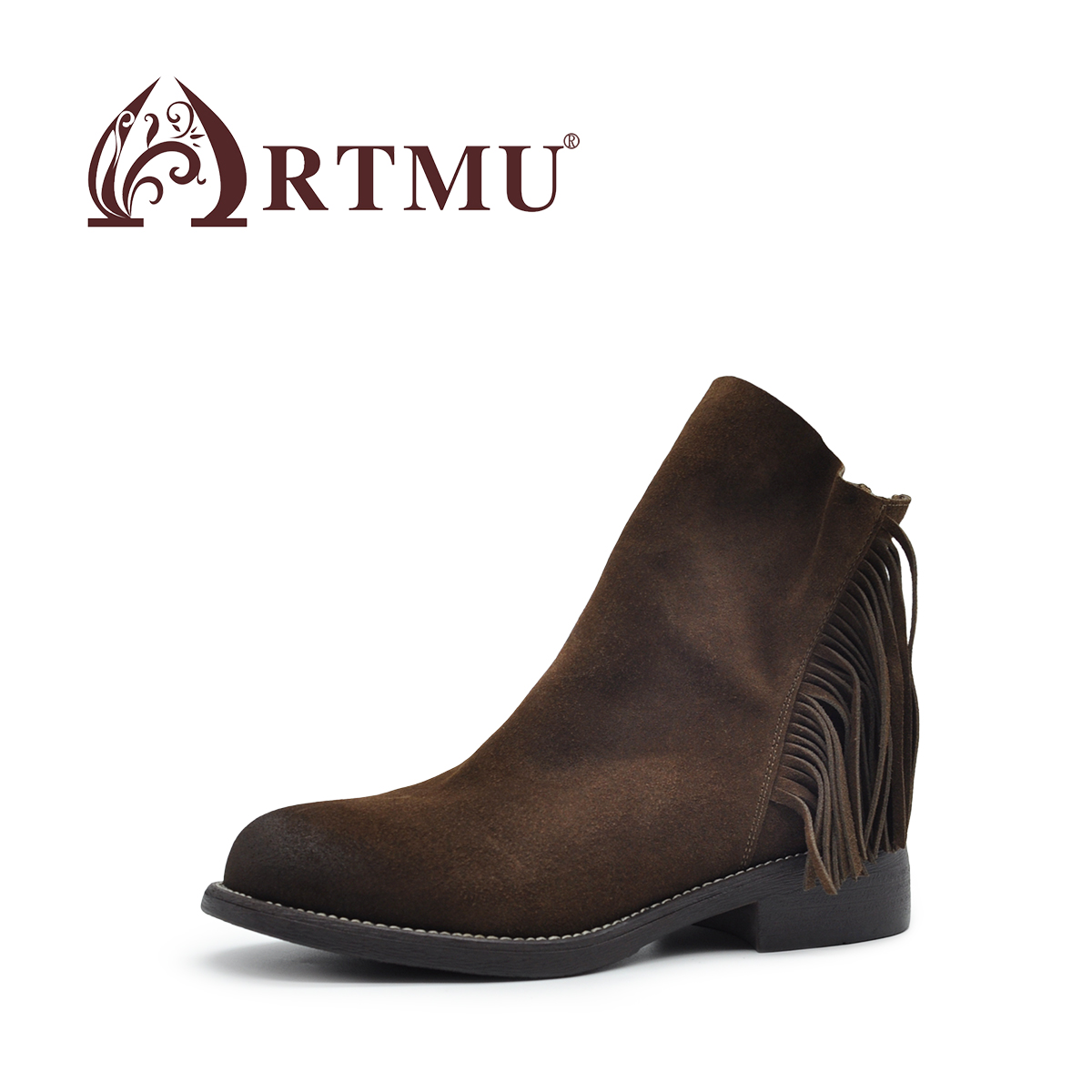 Artmu阿木真皮流苏早秋短靴子2025新款 低跟倒靴舒适百搭女靴 爆款