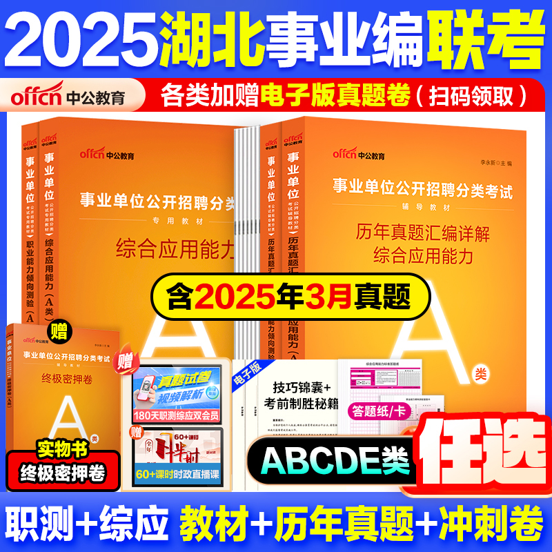 湖北事业编a类真题 中公教育2025湖北省事业编考试教材资料综合管理a类b类c类中小学d类医疗卫生e类事业单位联考职测综应历年真题