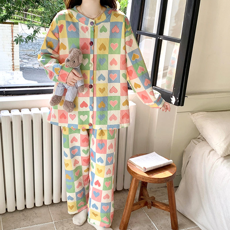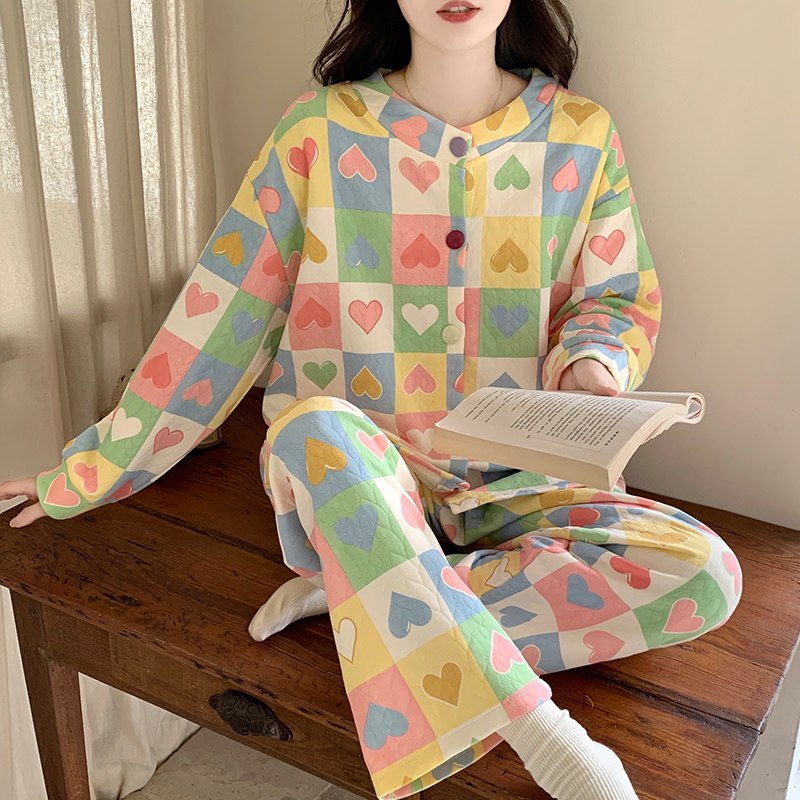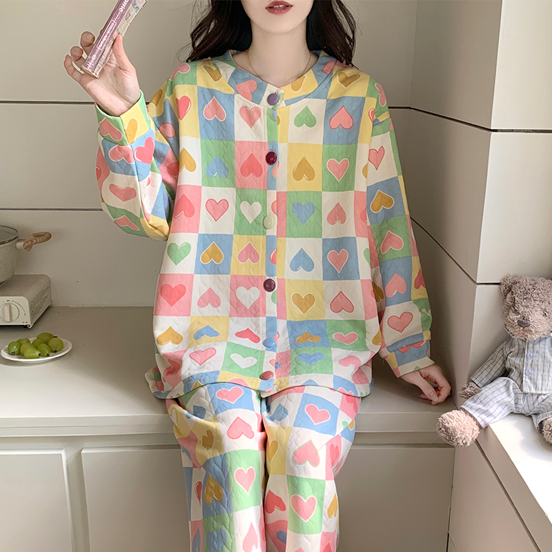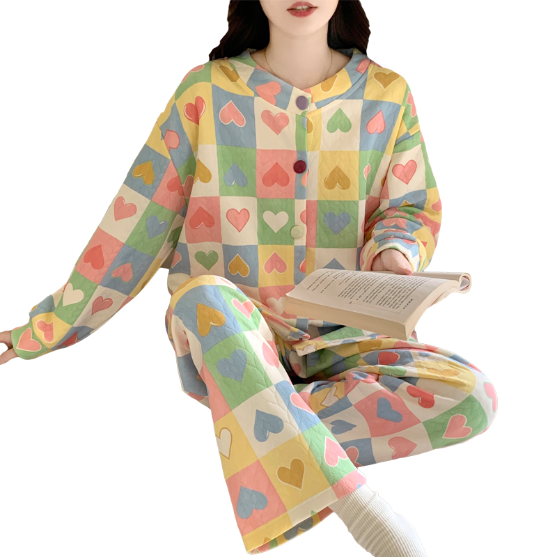 学生家居服套装 新款 加厚夹层棉卡通长袖 2025秋冬季 空气棉睡衣女款