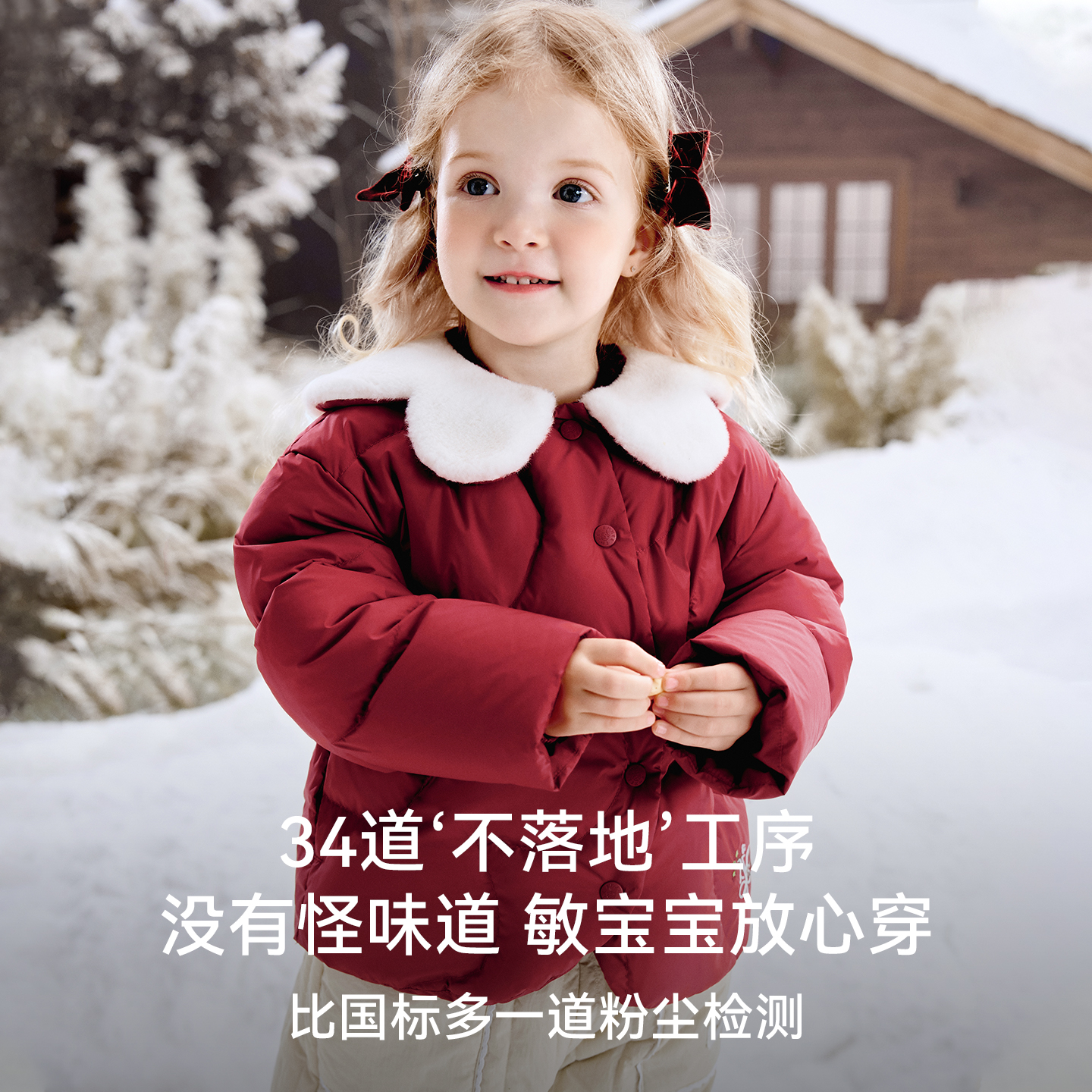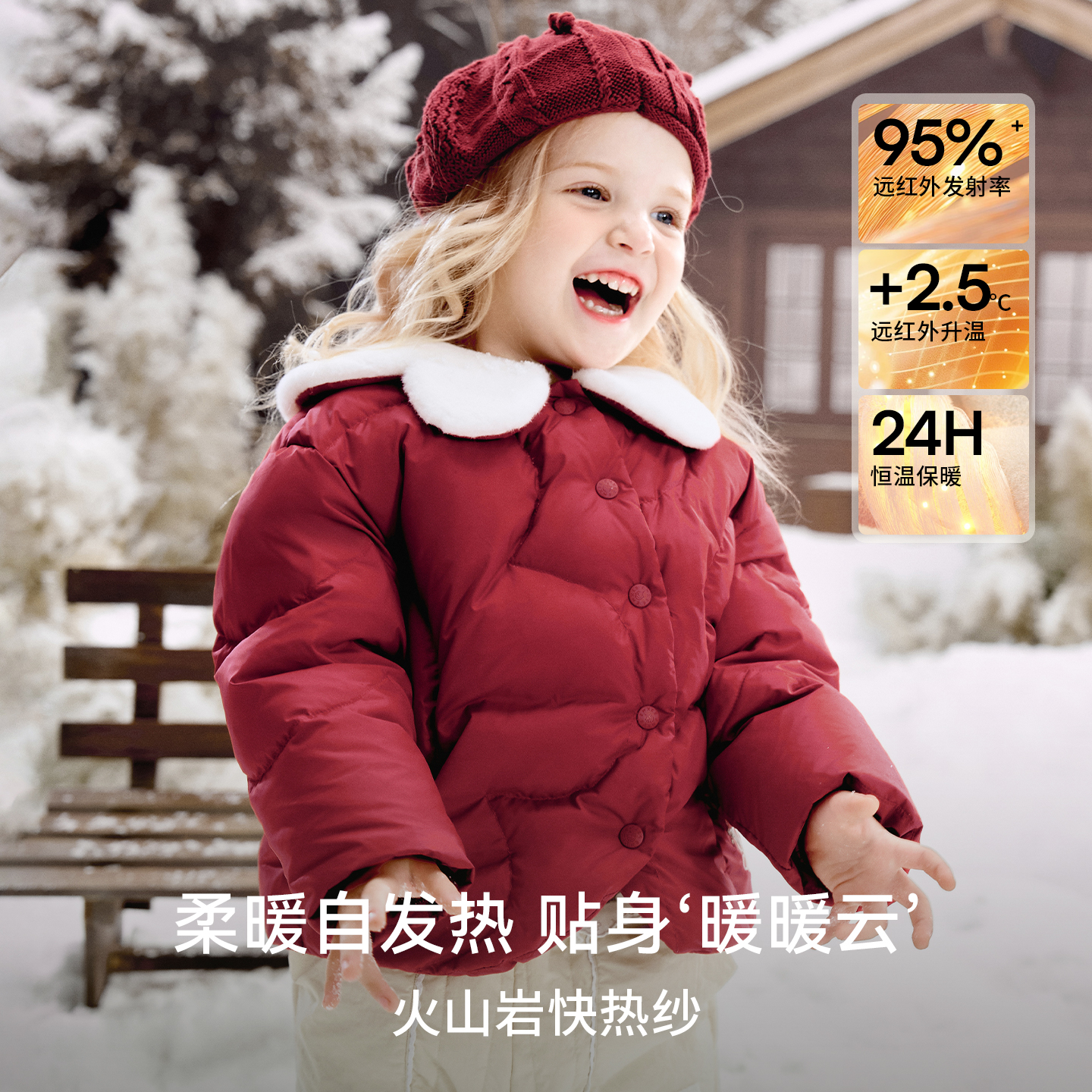嫚熙童装 外出防风蓄热外套 儿童轻薄羽绒服女宝保暖95鹅绒女童冬季