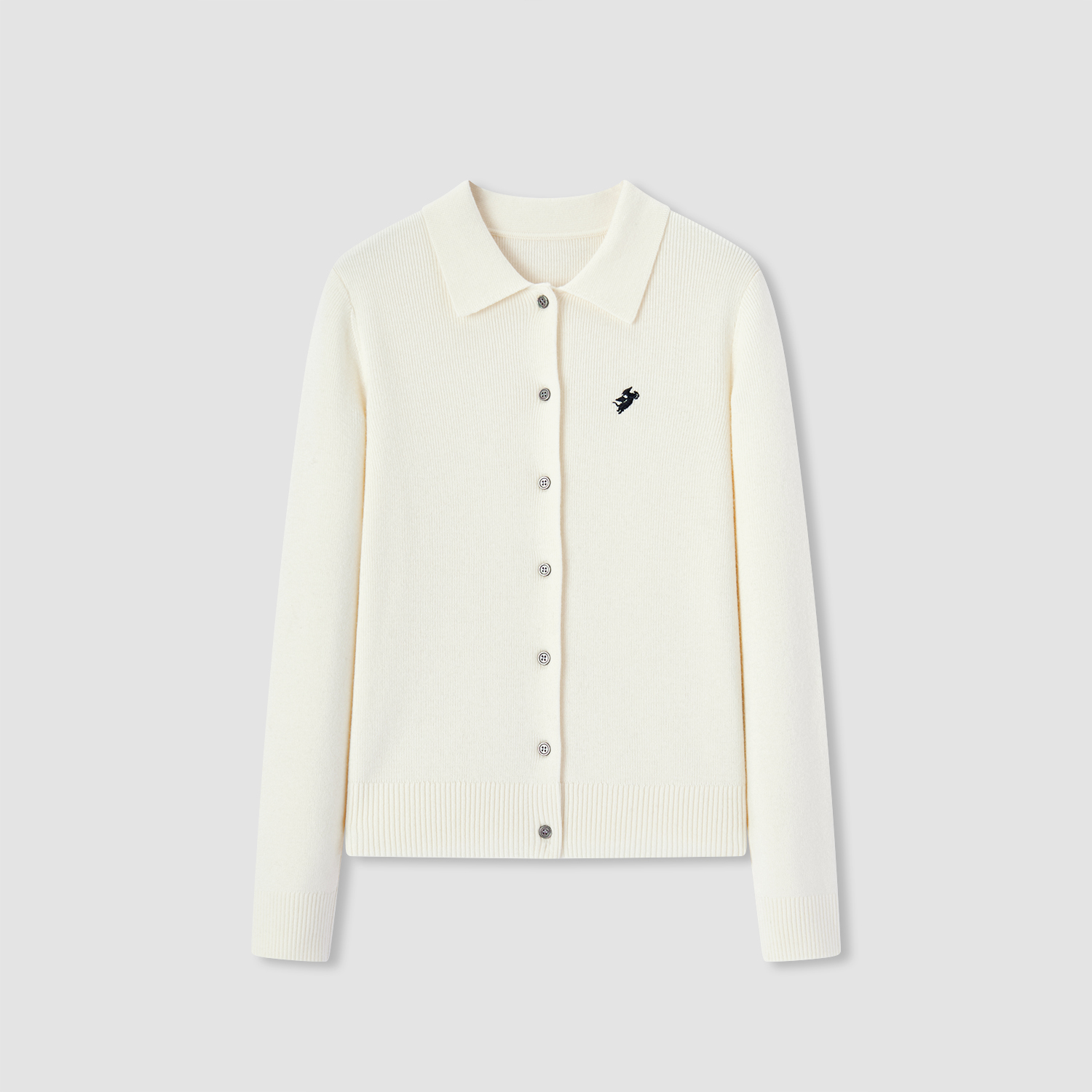 女保暖舒适长袖 新款 2025年冬季 爱居兔简约高级米白针织开衫
