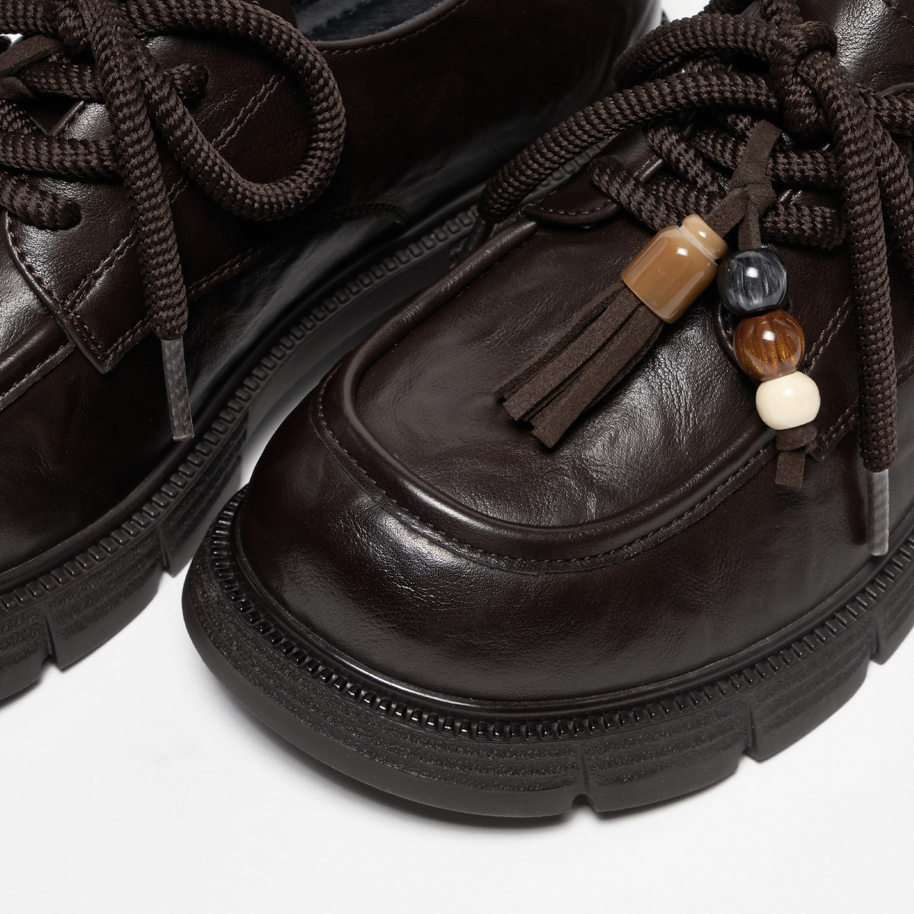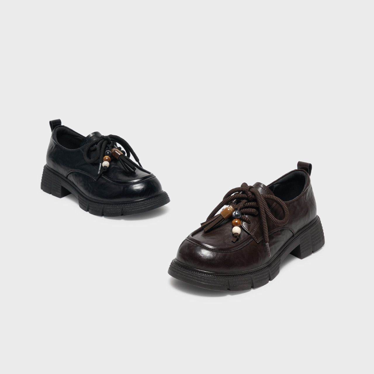 2025秋新款 布洛克中粗跟皮鞋 HL257112 系带牛津鞋 哈森漆皮德比鞋