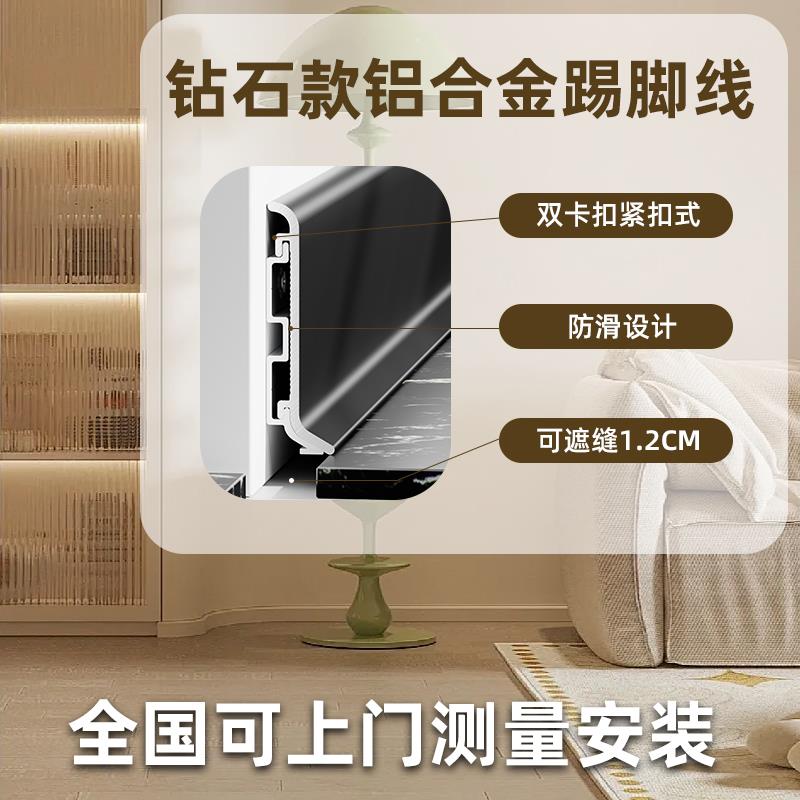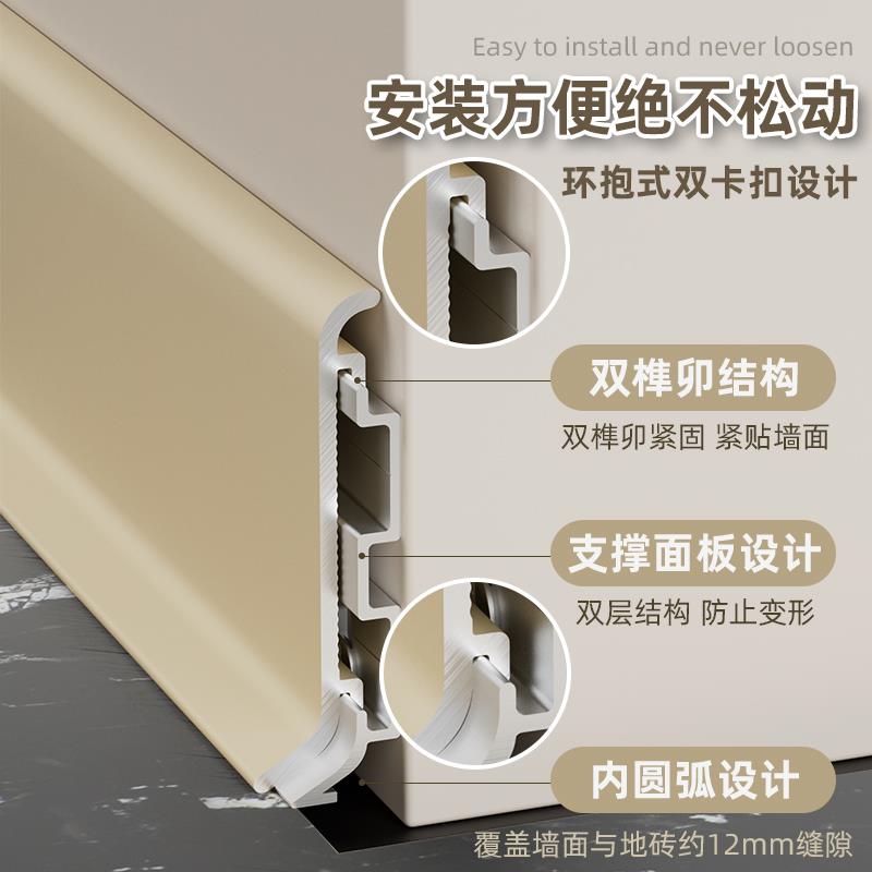 奶油风铝合金踢脚线6cm金属不锈钢新型卡扣地脚线极简超薄贴脚线