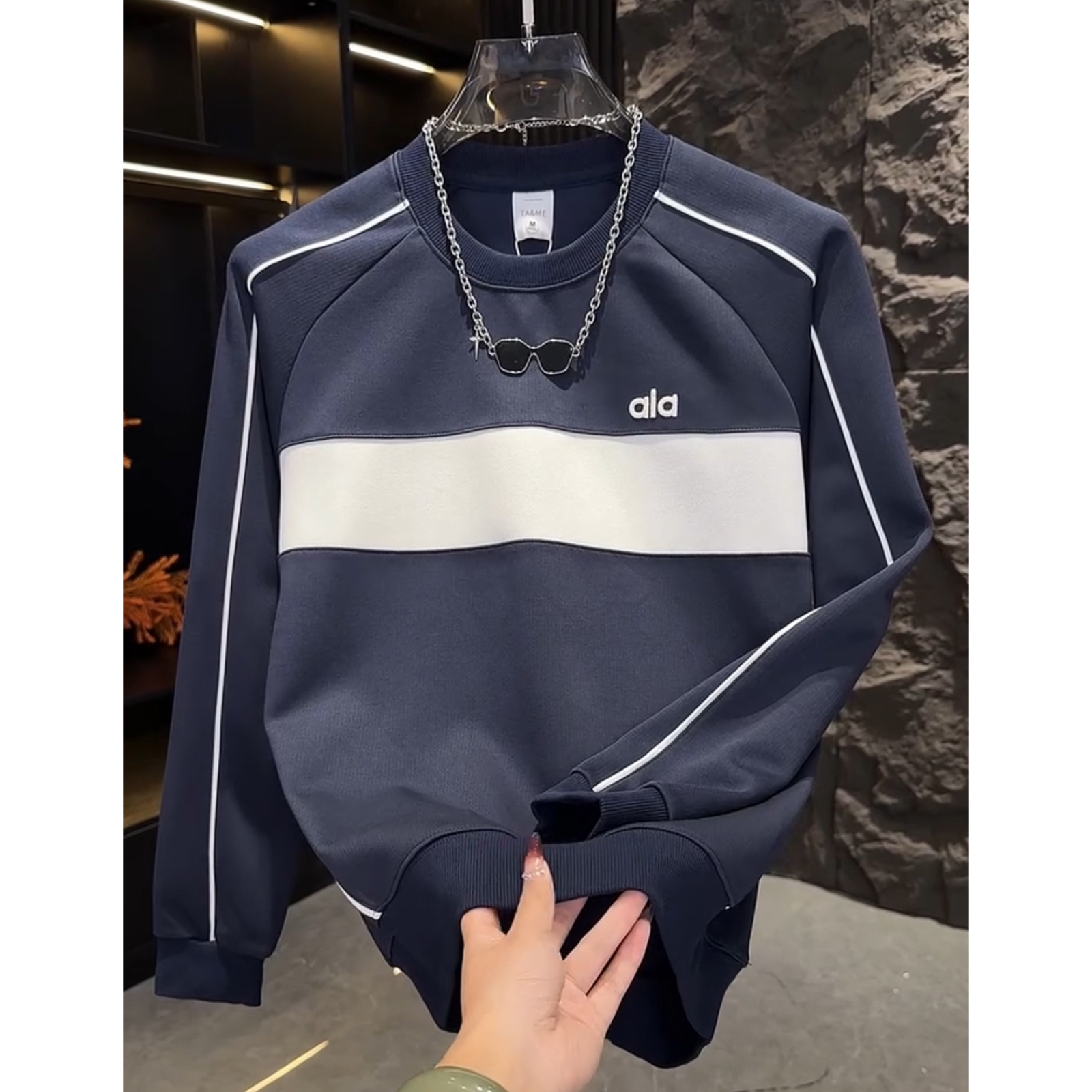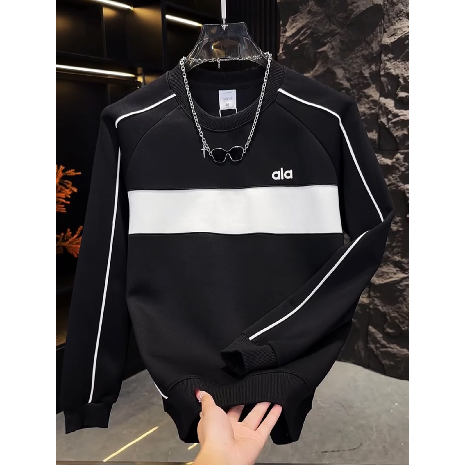 潮流刺绣字母圆领打底衫 时尚 秋冬季 休闲卫衣男士 明线拼接设计长袖