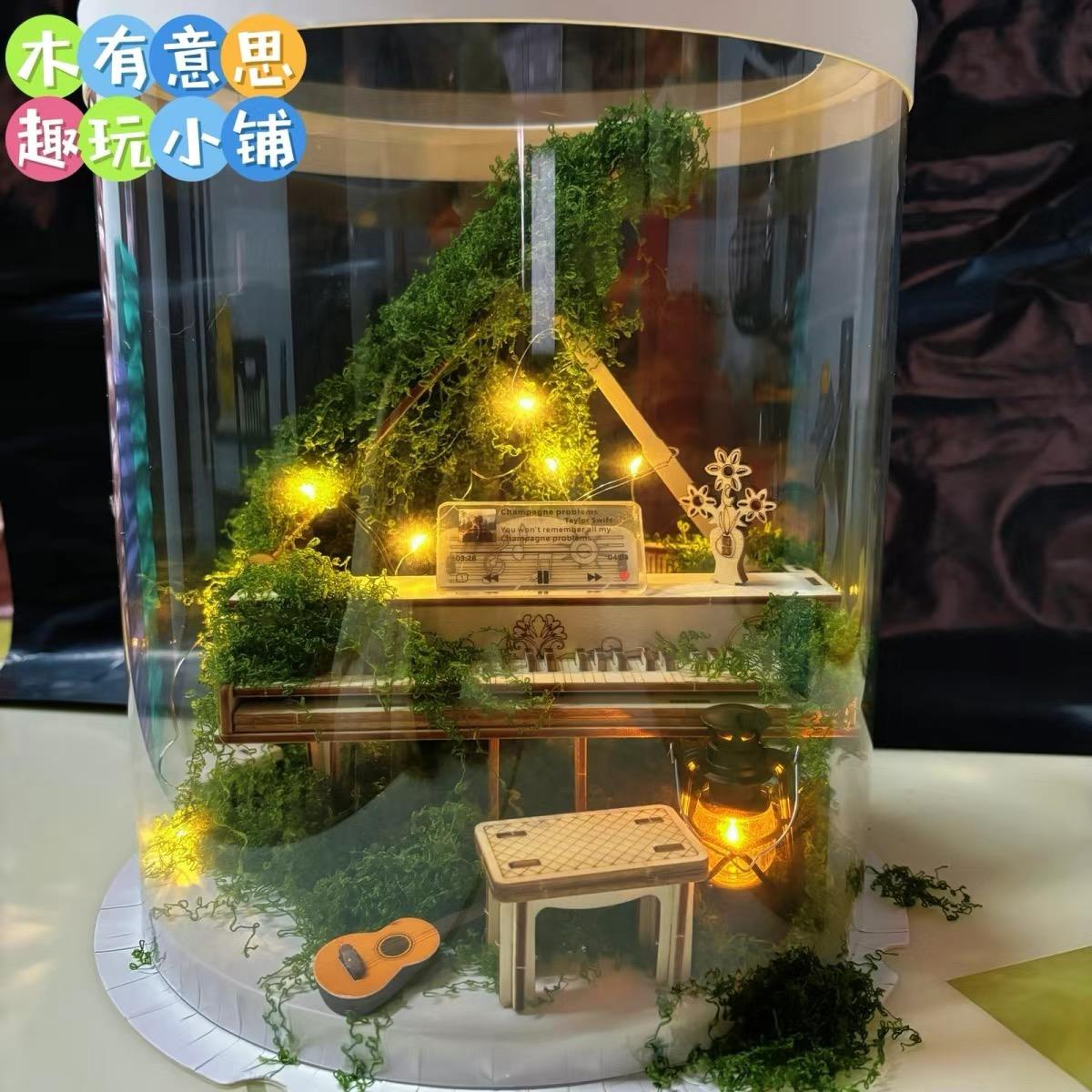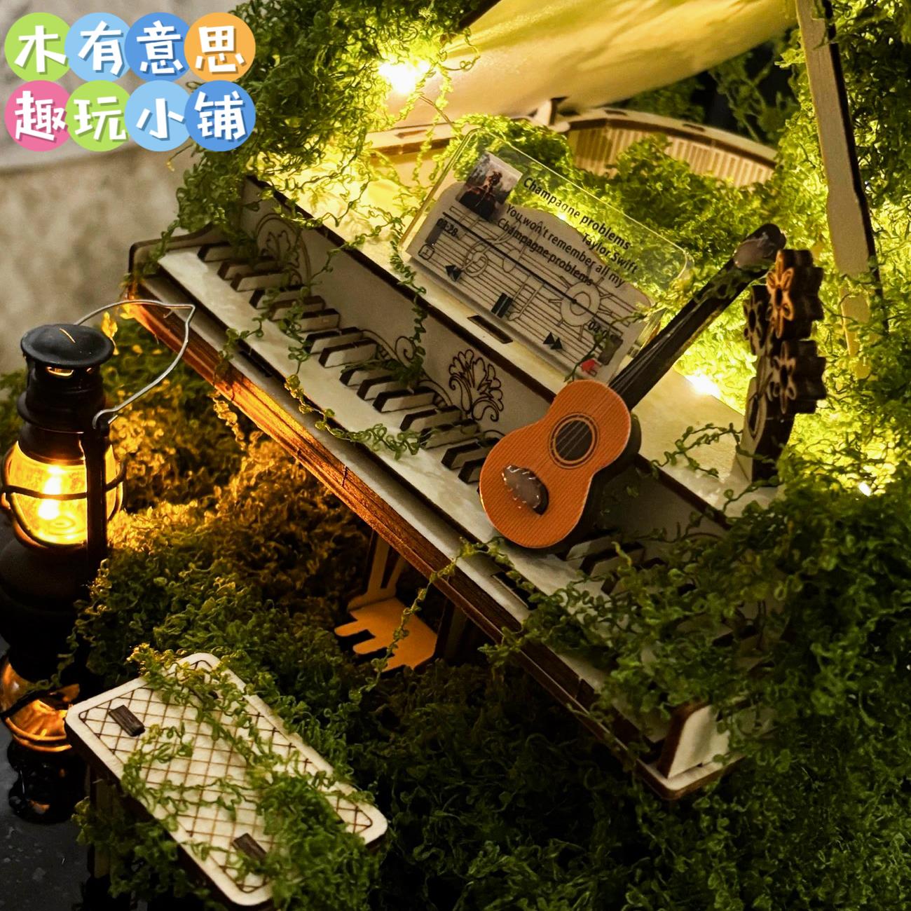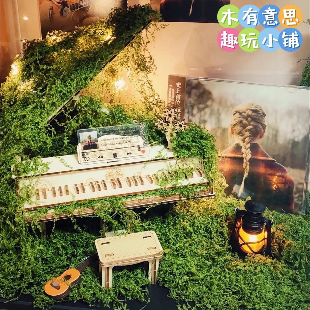 3d木制拼装 模型摆件霉霉苔藓问题香槟钢琴 迷你钢琴仿真益智拼装