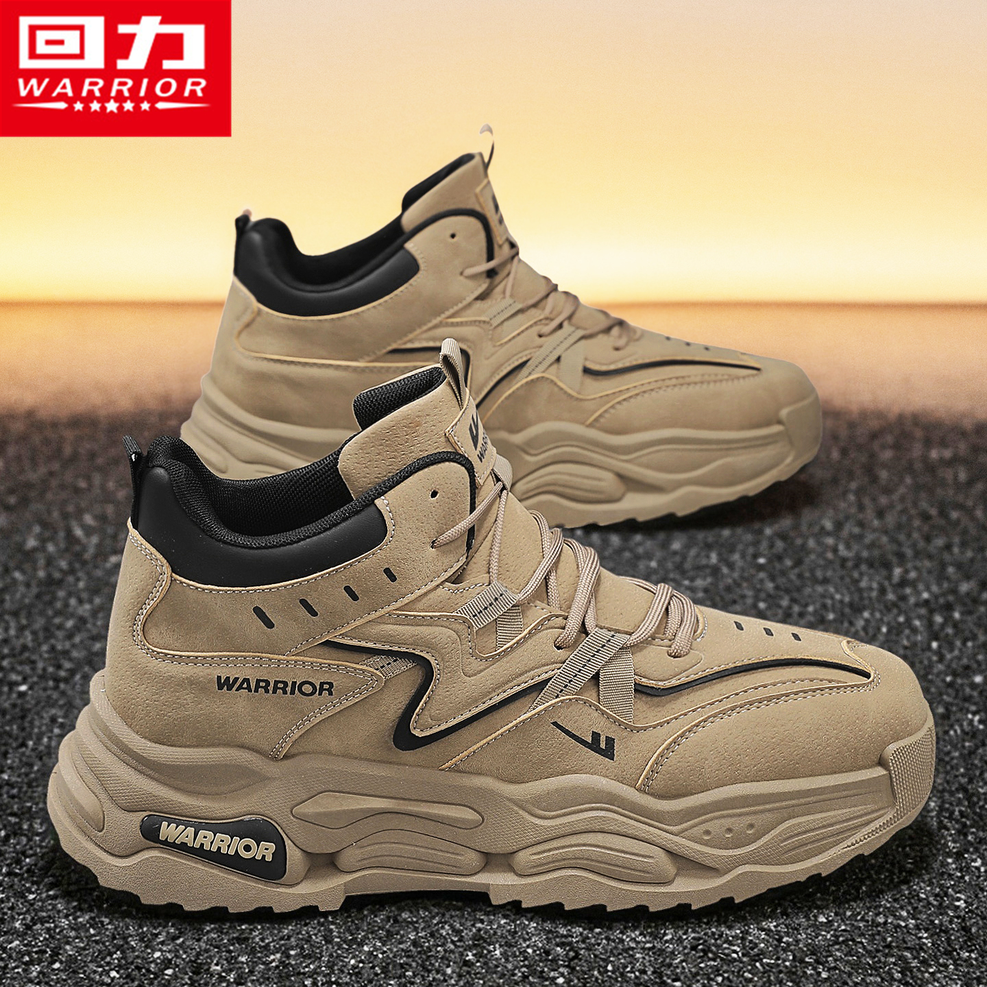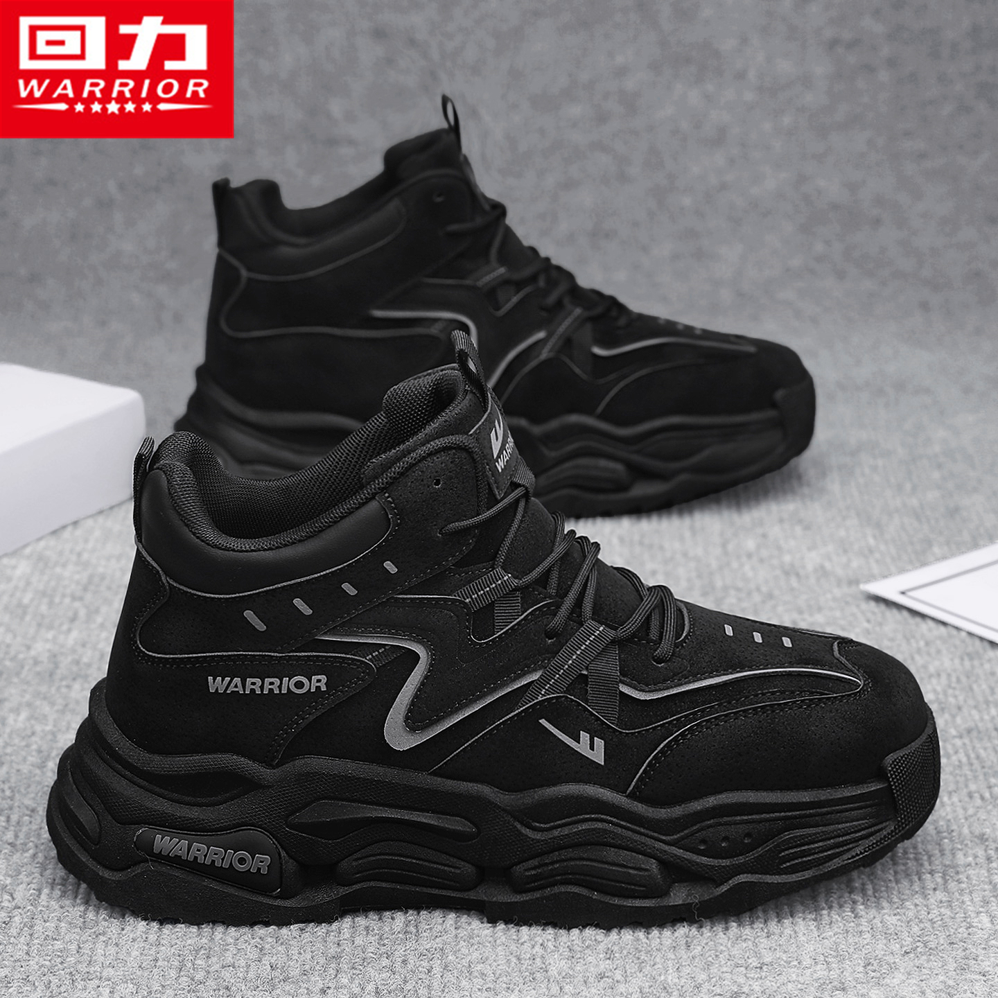 运动鞋 高帮休闲鞋 秋冬新款 子学生厚底男鞋 皮面鞋 征服鸿星尔克板鞋