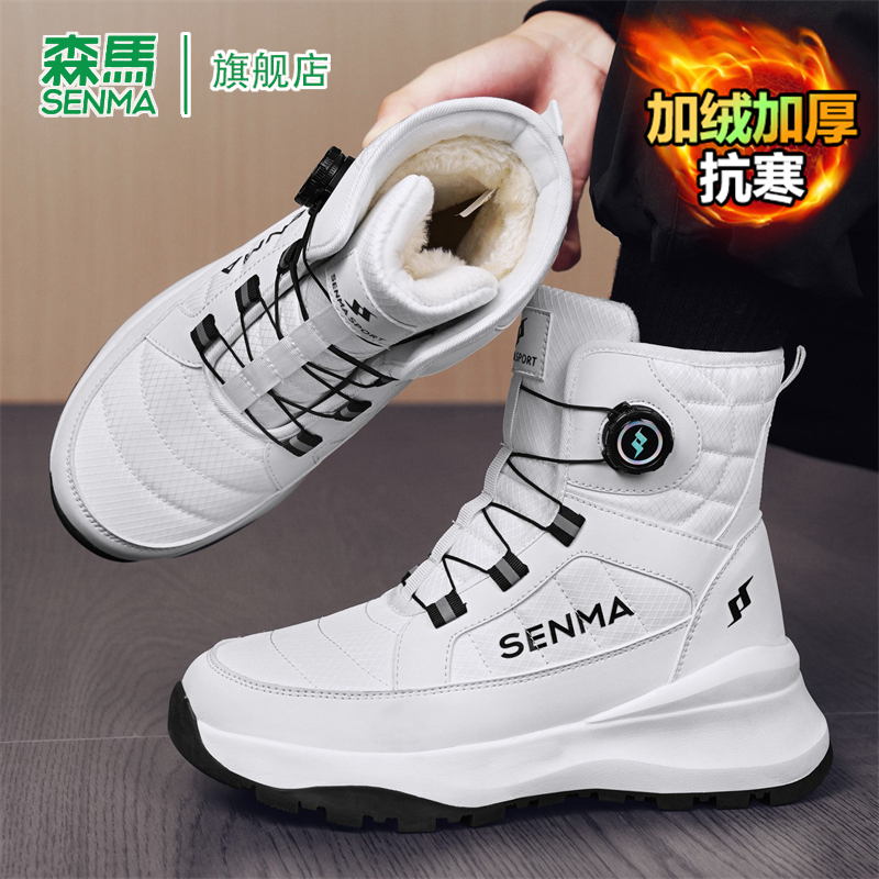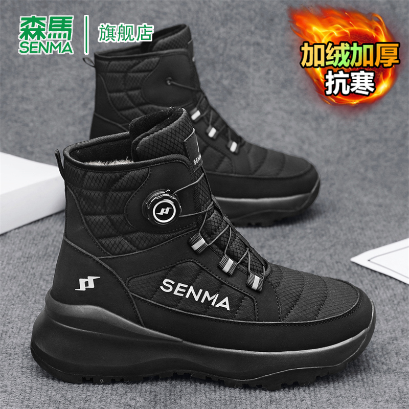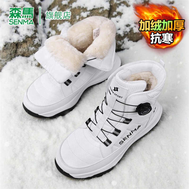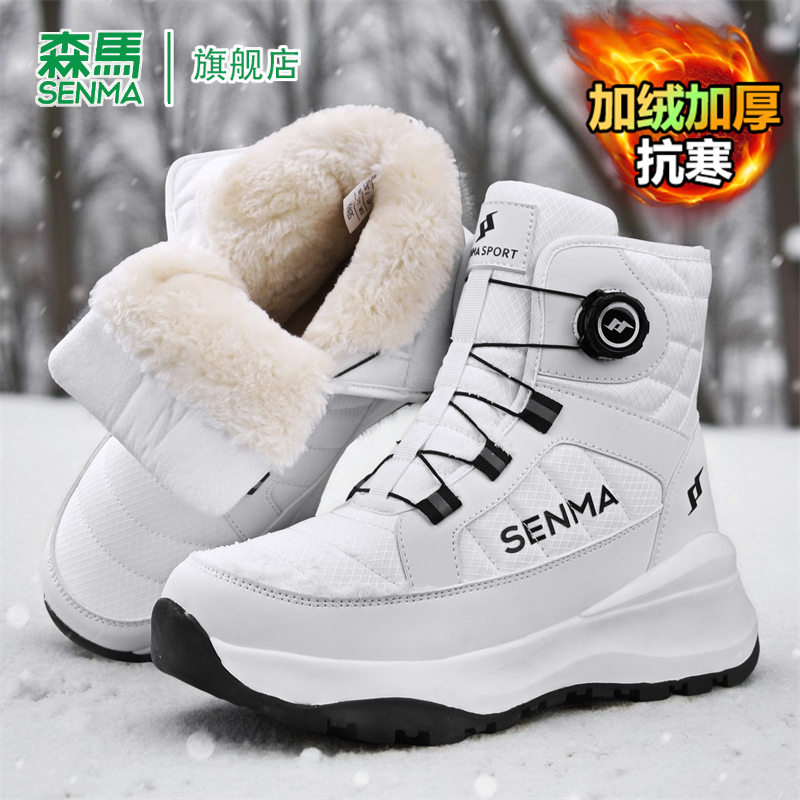 加绒加厚保暖旋转纽扣情侣高帮东北棉鞋 冬季 女 雪地靴男款 森马时尚