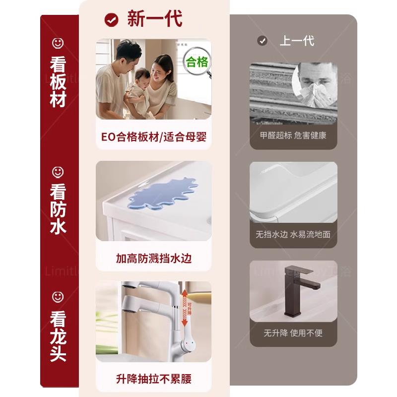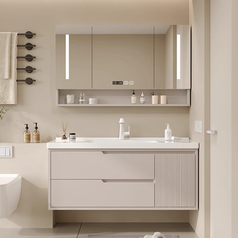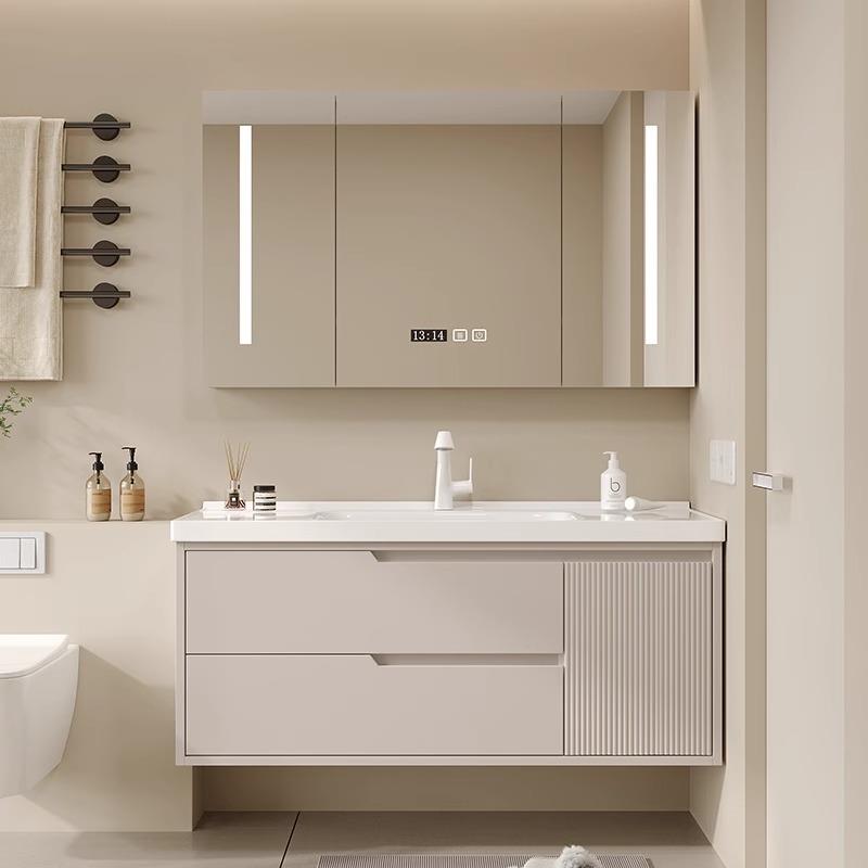 奶油风橡木浴室柜陶瓷一体洗脸盆柜组合卫生间洗手池洗漱台卫浴柜