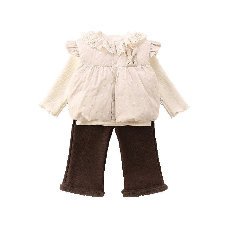 婴幼儿分体套装 女童秋冬套装 冬季 喇叭裤 宝宝兔兔羽绒马甲打底衫