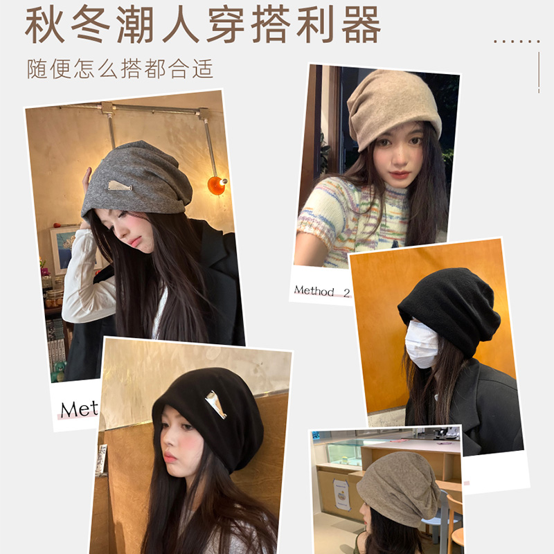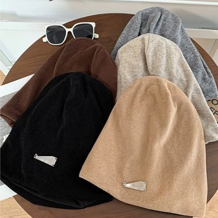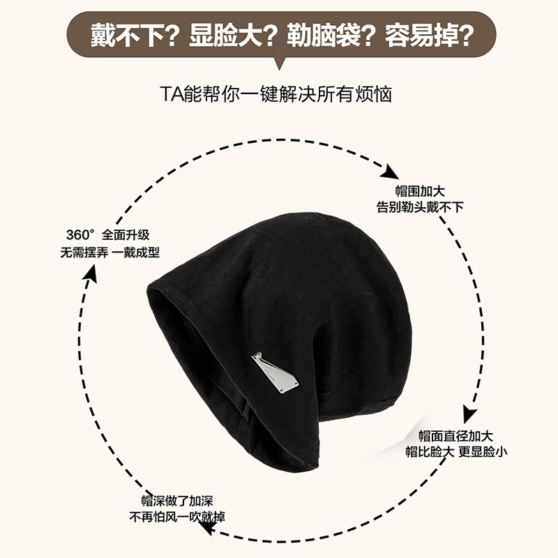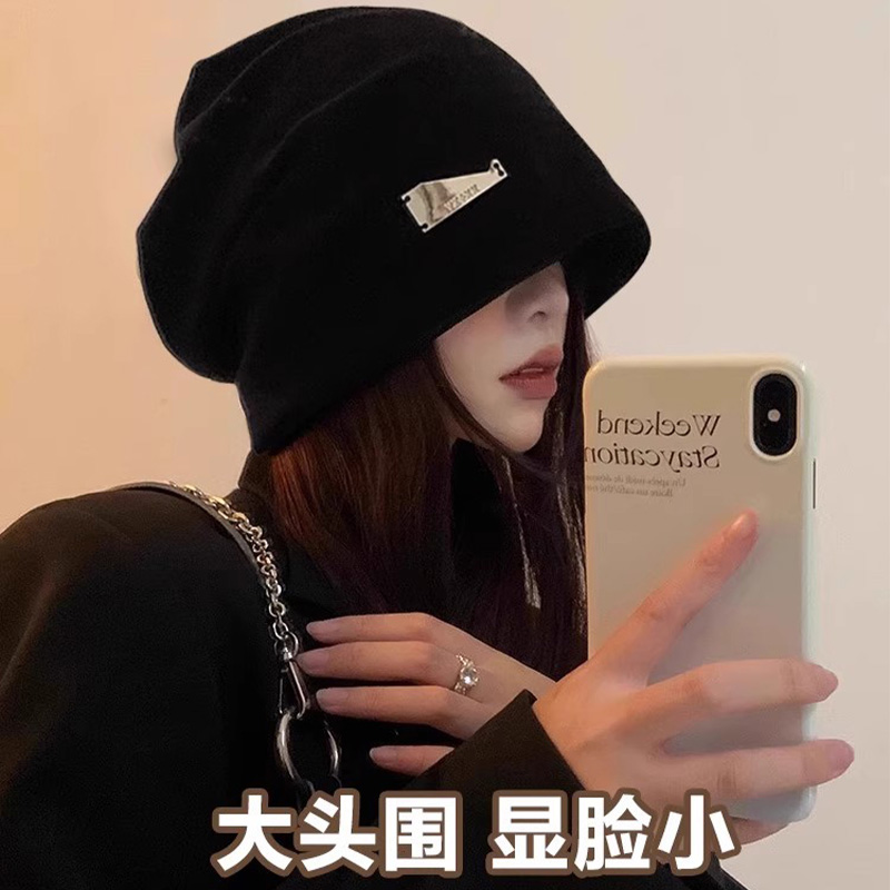 韩系黑色堆堆帽子女款 素颜遮脸颊包头帽大头围显脸小冷帽 2025新款
