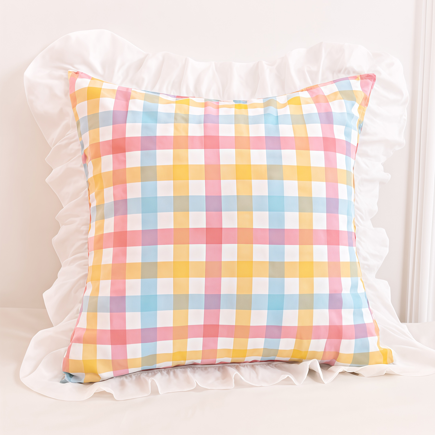水洗棉床单格子控被套四件套枕套抱枕腰枕芯餐桌布被单单件床品