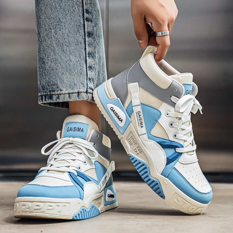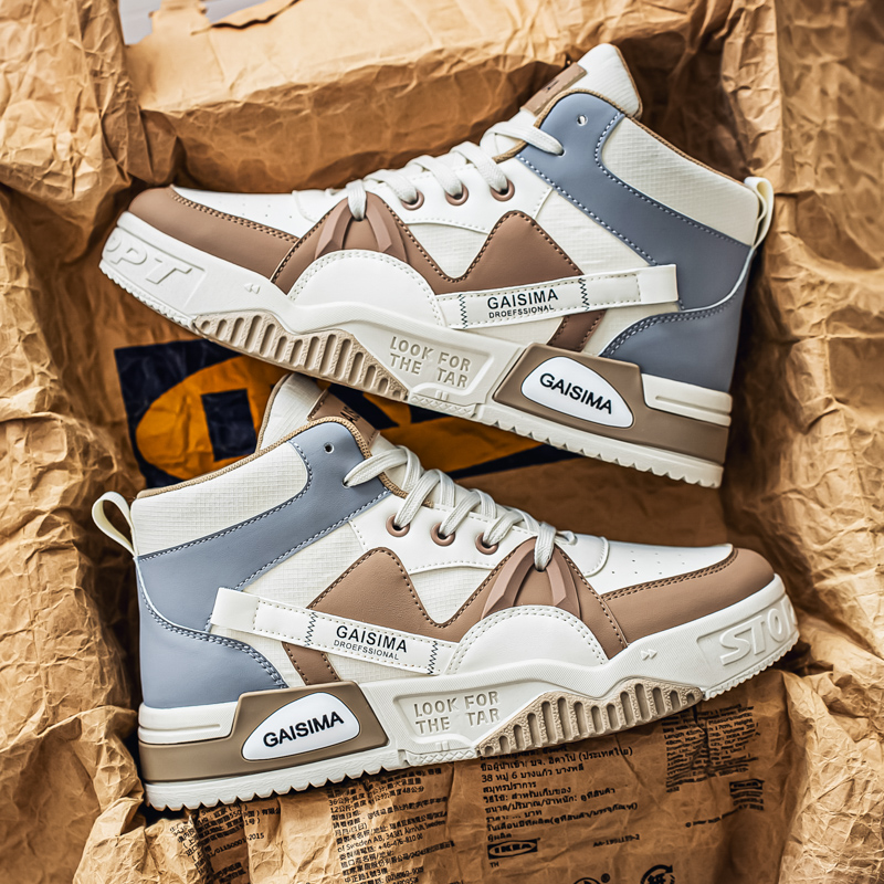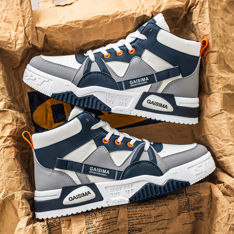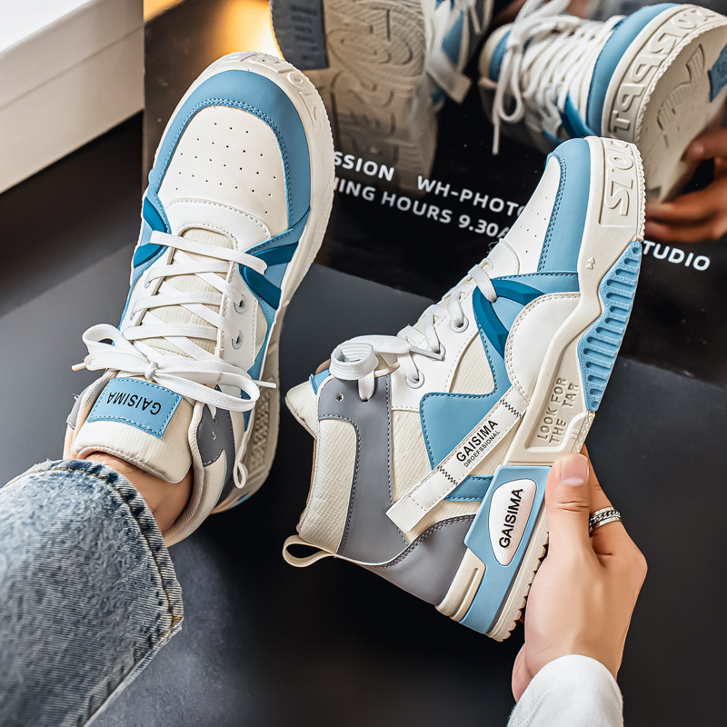 运动鞋 高帮休闲鞋 秋冬新款 子学生厚底男鞋 皮面鞋 征服鸿星尔克板鞋