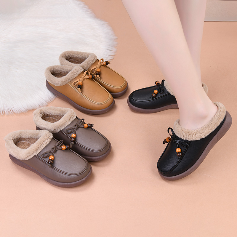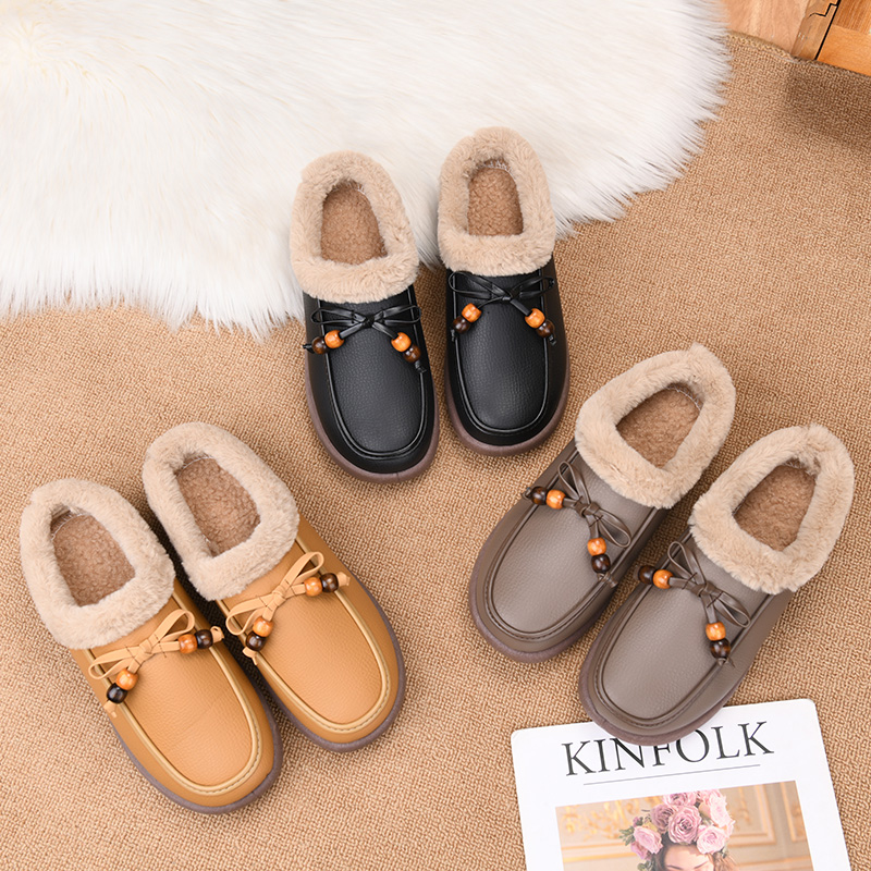 外穿一脚蹬博肯包头半拖鞋 2025冬季 女加绒保暖妈妈豆豆鞋 棉鞋 新款