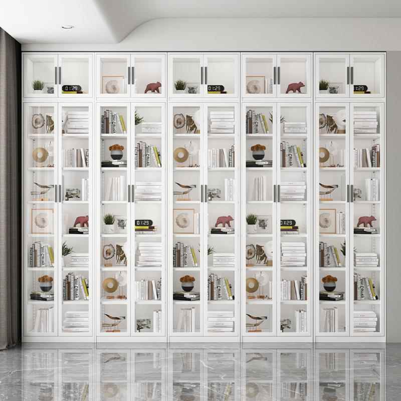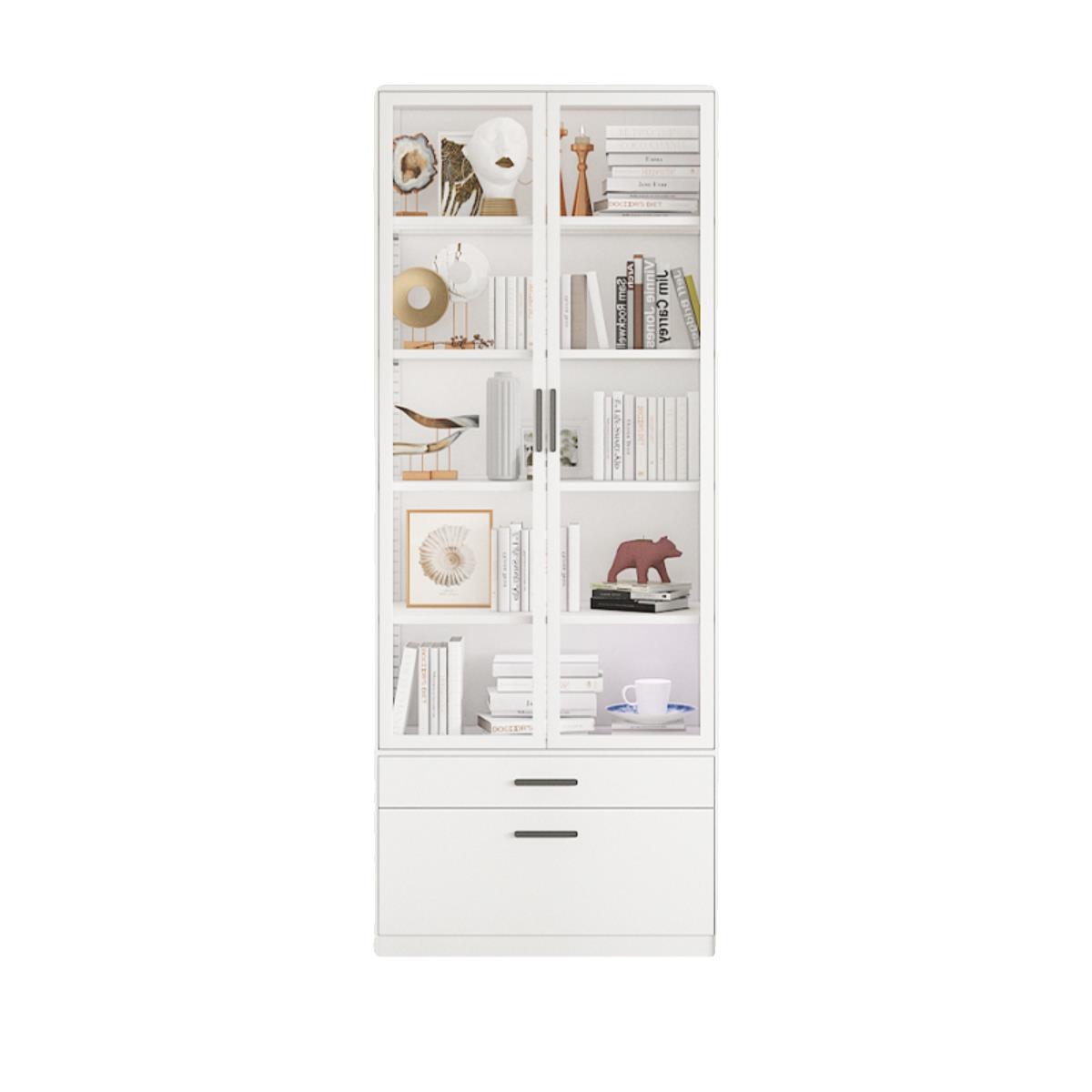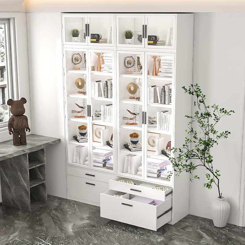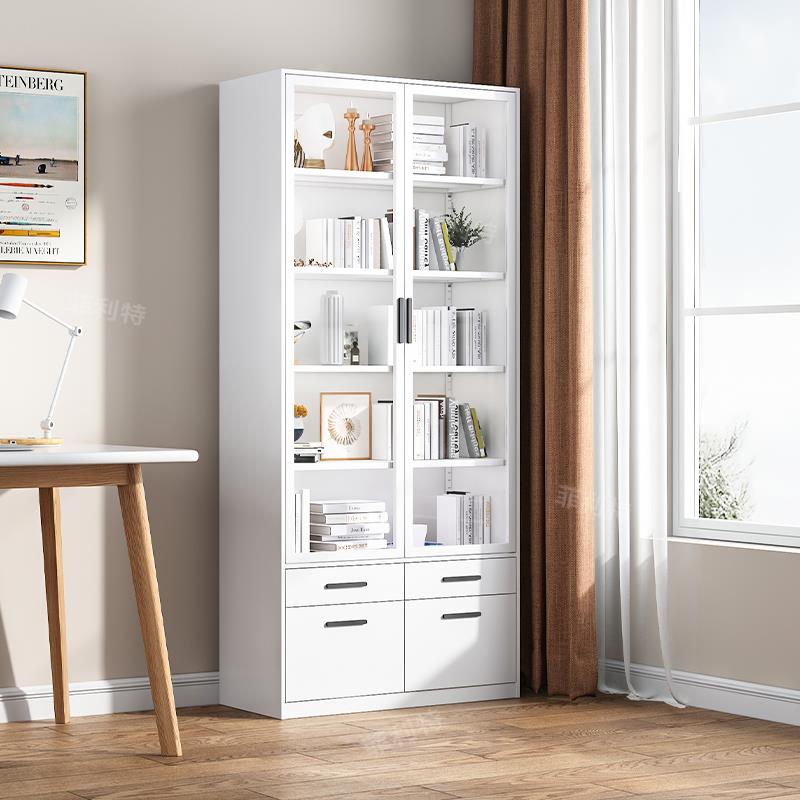 菲利特家用防尘书柜展示柜带抽屉落地玻璃门奶油风儿童书架置物柜