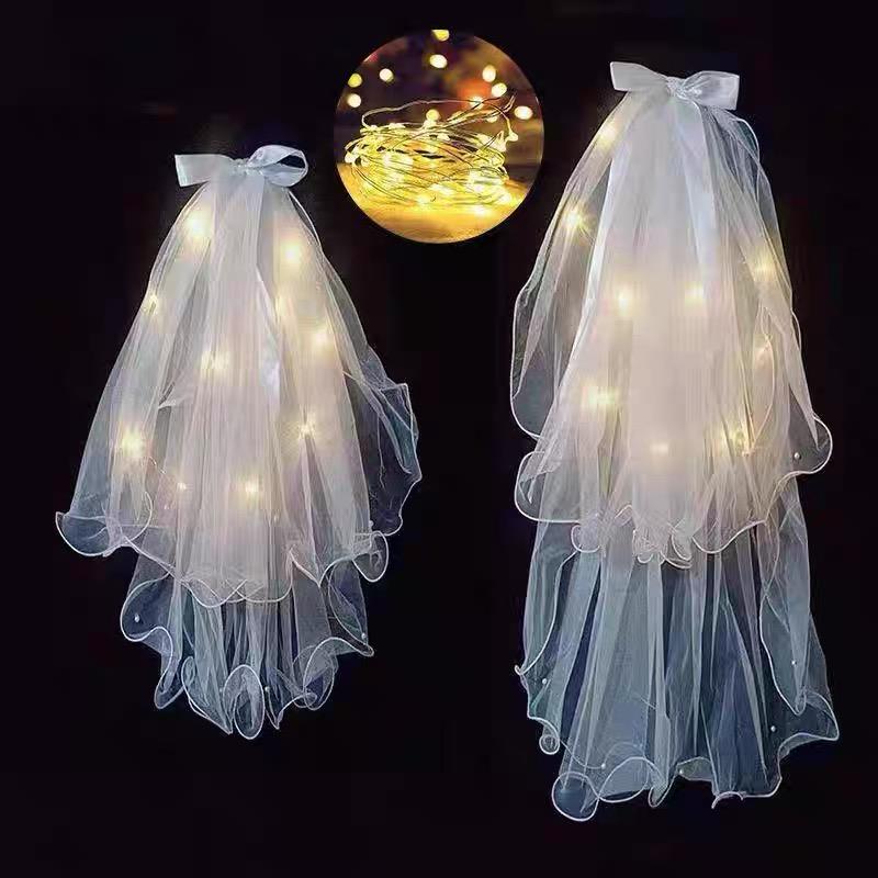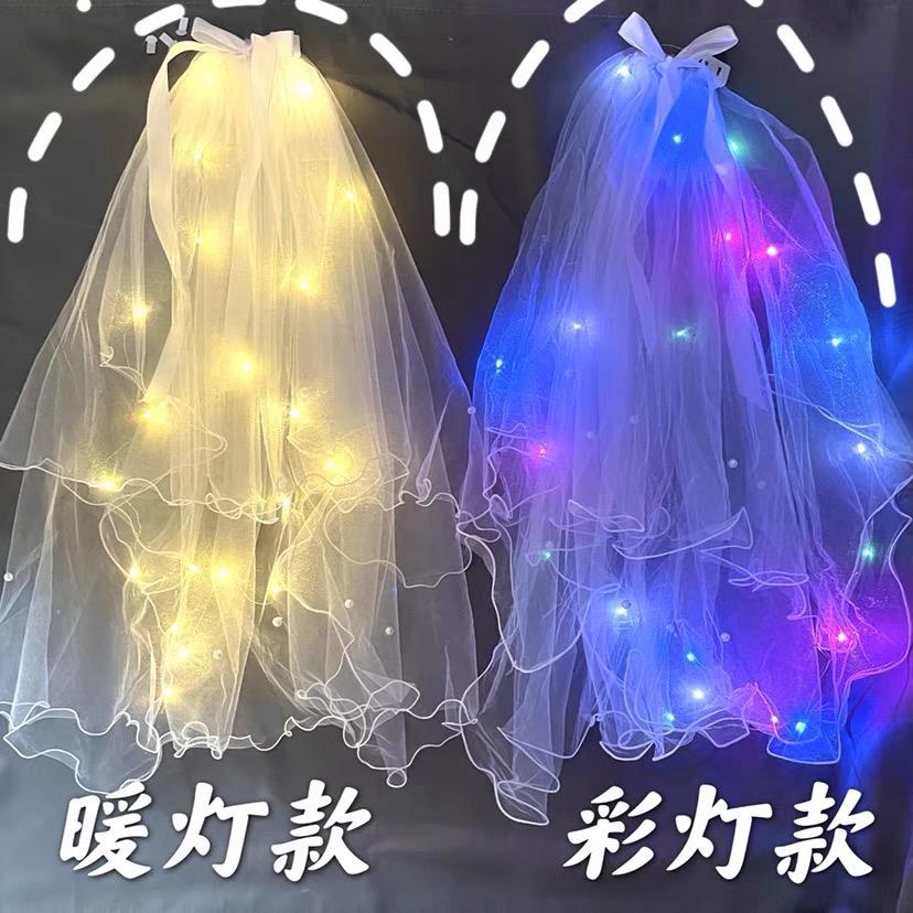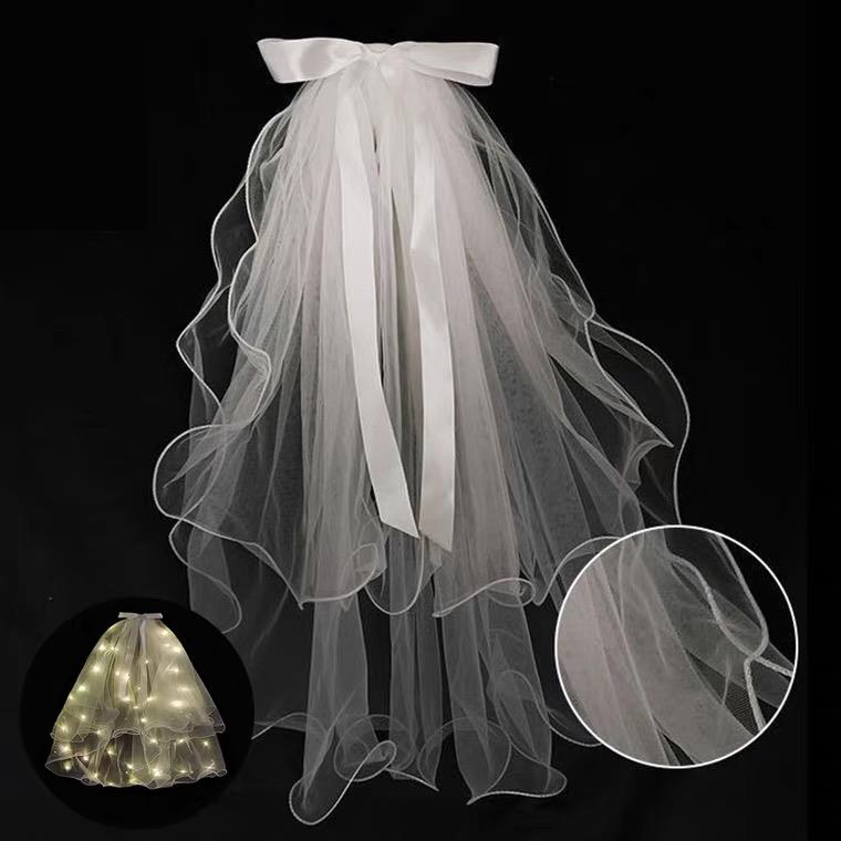 丝带蝴蝶结森系拍照发光小女孩 新娘头纱儿童头饰带灯长款 韩式 新款