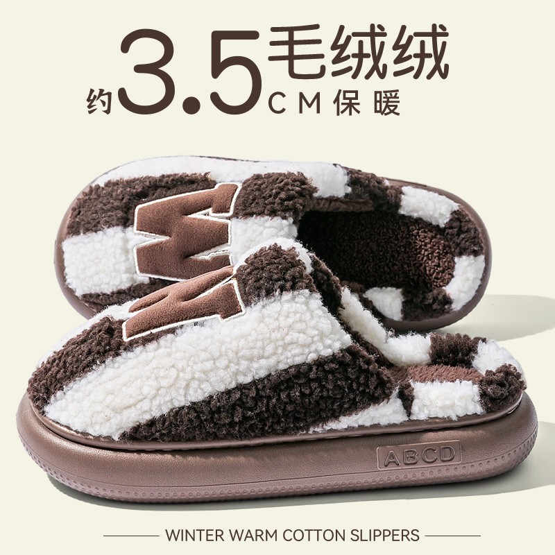 冬天情侣款 棉拖鞋 男款 室内家居保暖防滑加绒加厚棉鞋 女冬季