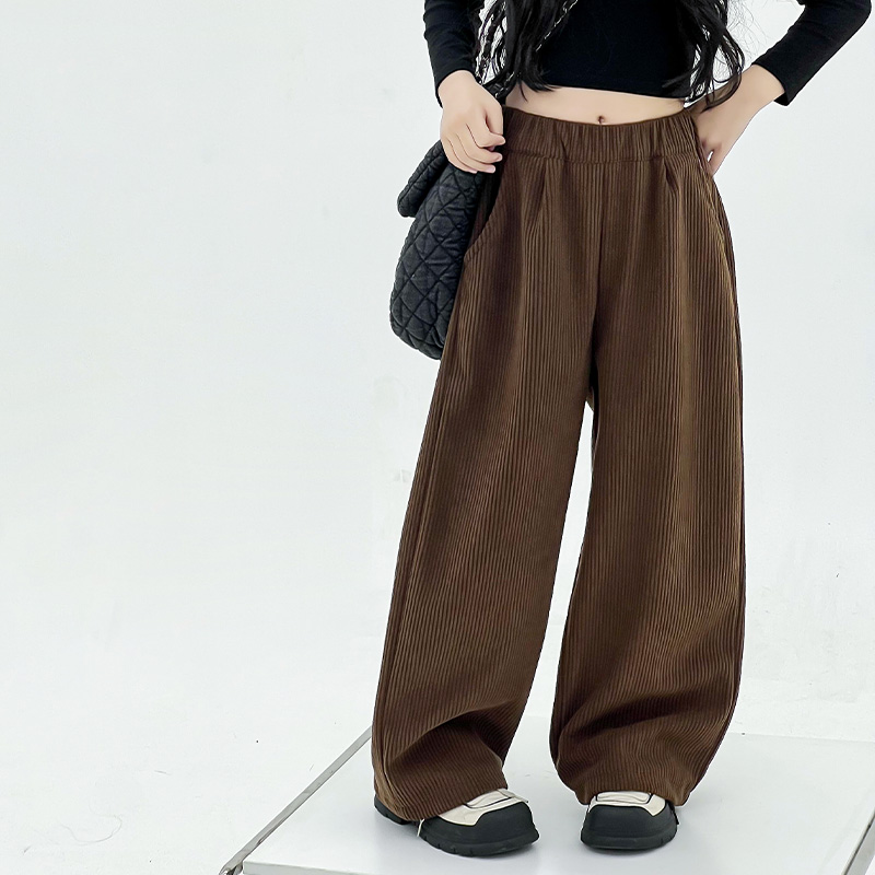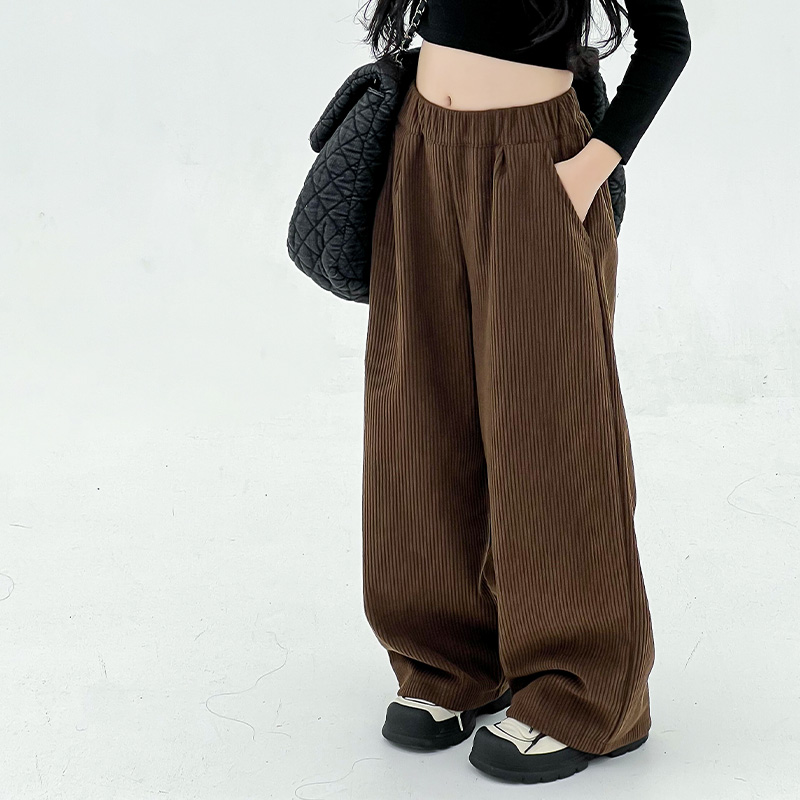 儿童阔腿裤 2025新款 长裤 灯芯绒直筒裤 女童裤 黑色运动童装 子春秋款