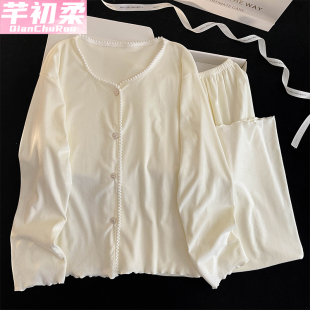 全棉家居服休闲套装 曼系男士 甜美时尚 宽松开衫 纯棉睡衣女春秋时尚