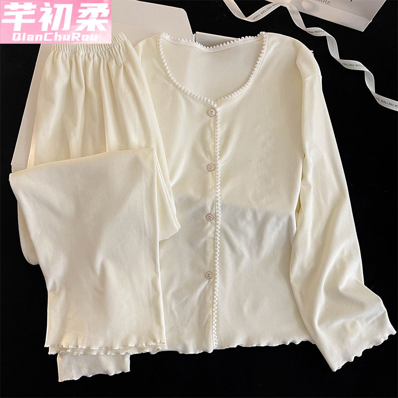 翻领情侣款 法式 舒适秋冬外穿睡衣 开襟家居服套装 ubras云棉长袖