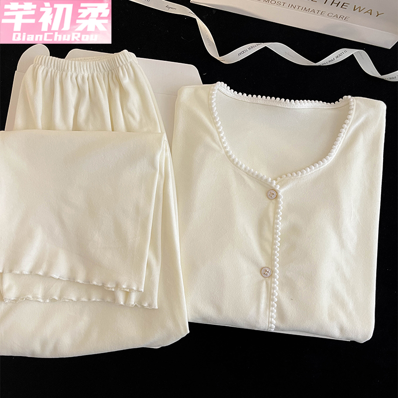 海岛绒可外穿家居服 简约薄款 睡衣女秋冬季 保暖珊瑚绒女士睡衣套装