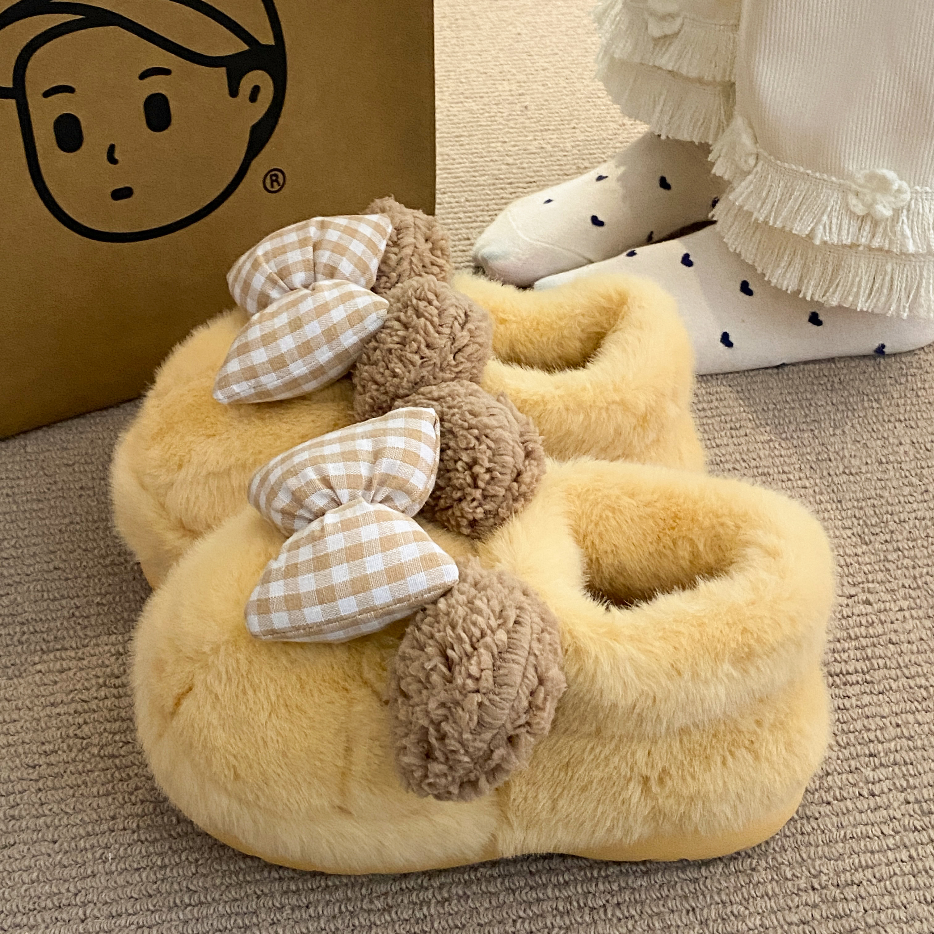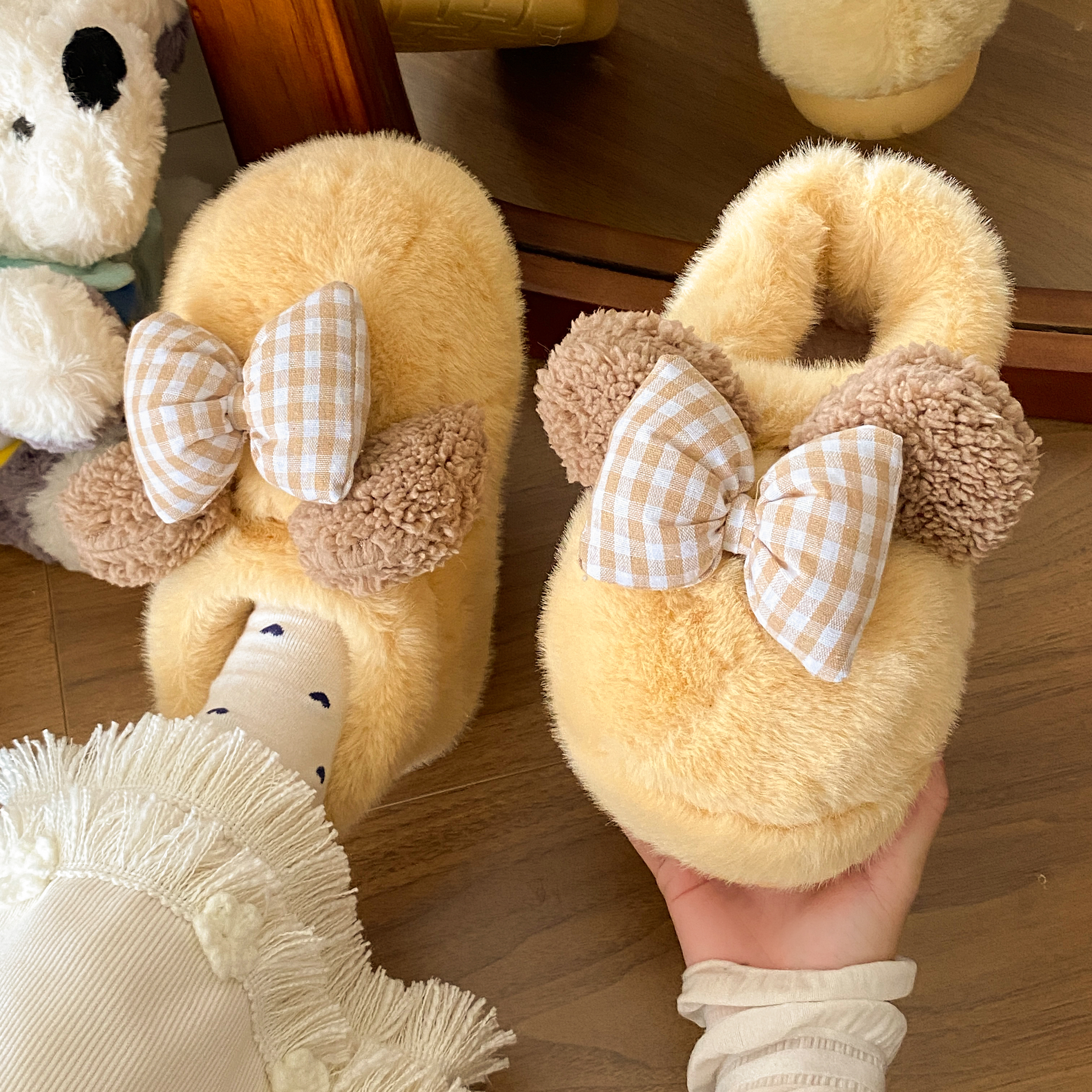室内加绒保暖增高厚底棉鞋 时尚 秋冬季 女士2025新款 百搭蝴蝶结棉鞋