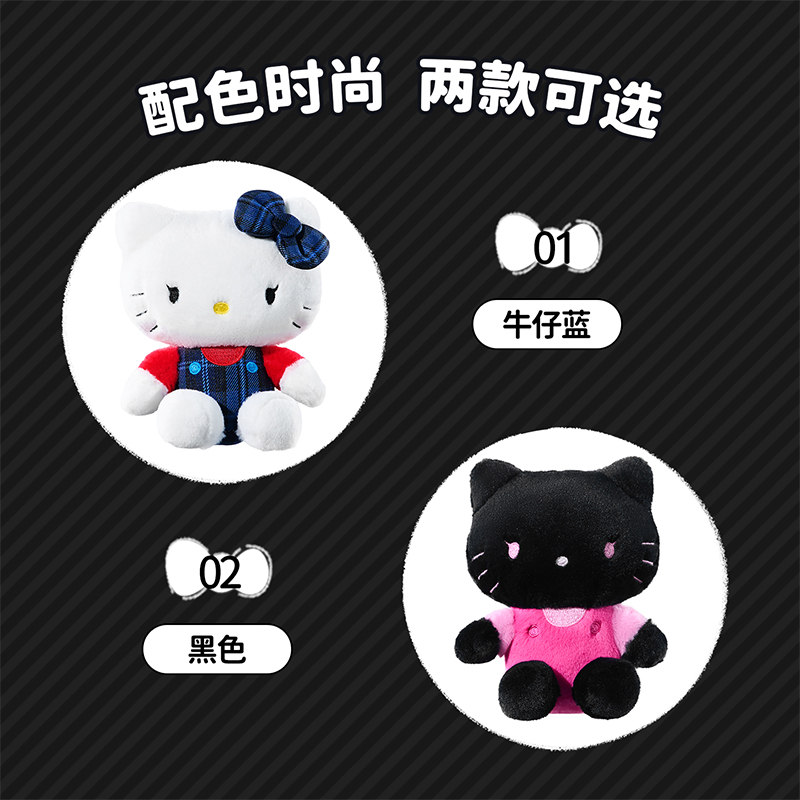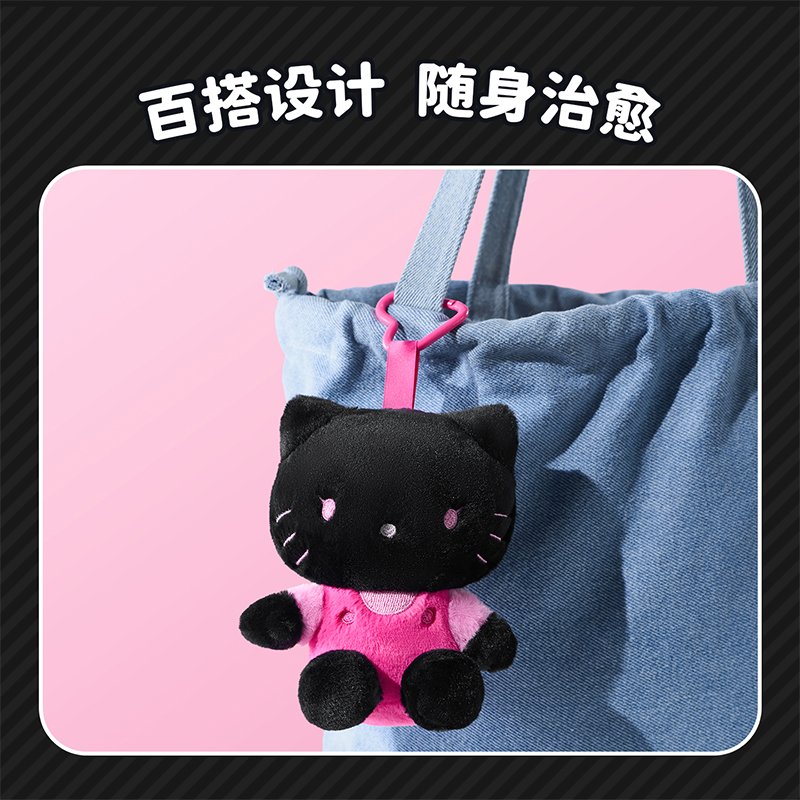 MINISO名创优品三丽鸥黑色HelloKitty毛绒挂件牛仔蓝玩偶公仔挂饰