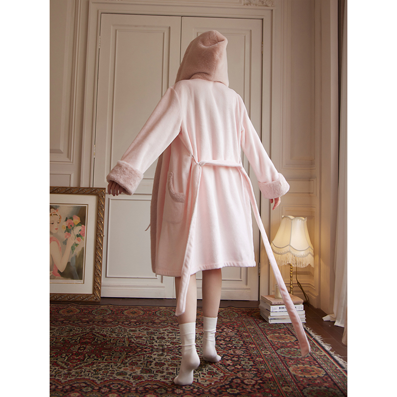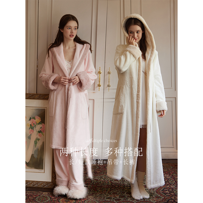 RoseTree珊瑚绒睡衣女三件套冬季 法兰绒浴袍牛奶绒毛绒睡衣可外穿