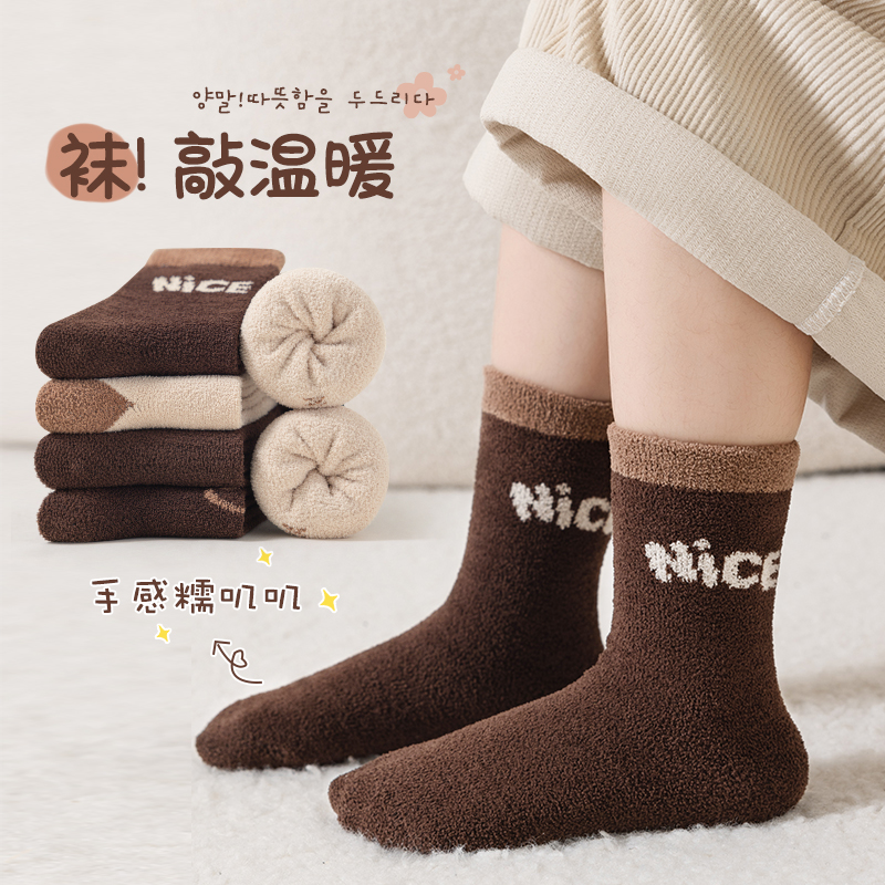 儿童袜子秋冬季 加绒加厚中筒袜男童女童卡通双面绒保暖居家睡眠袜