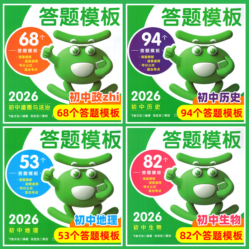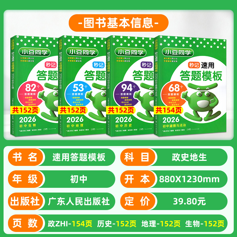 2026新秒记初中小四门答题模版 生物地理历史政治速用初一初二初三初中中考知识点背诵复习汇总大全必刷题小豆同学提优培训60天搞定