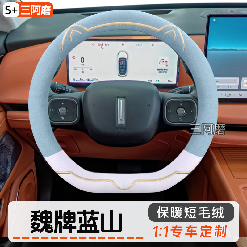 2025款 保暖短毛绒可爱金边猫耳朵汽车把套女 魏牌蓝山方向盘套冬季