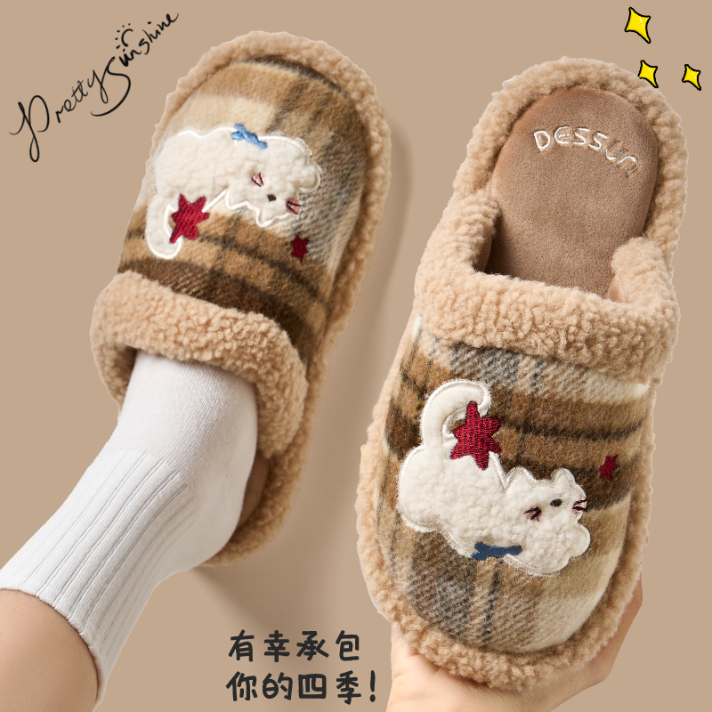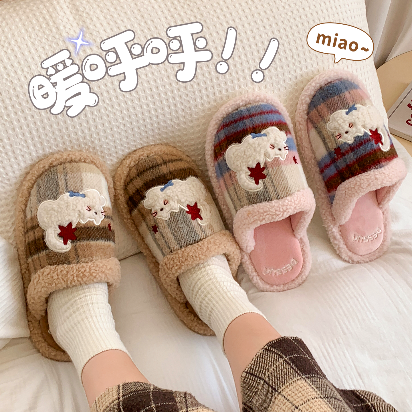 保暖室内家居家用可爱猫咪毛毛拖鞋 防滑棉拖鞋 2025新款 秋冬季 女款