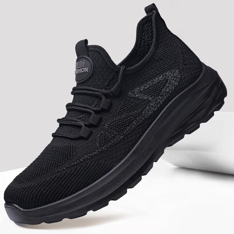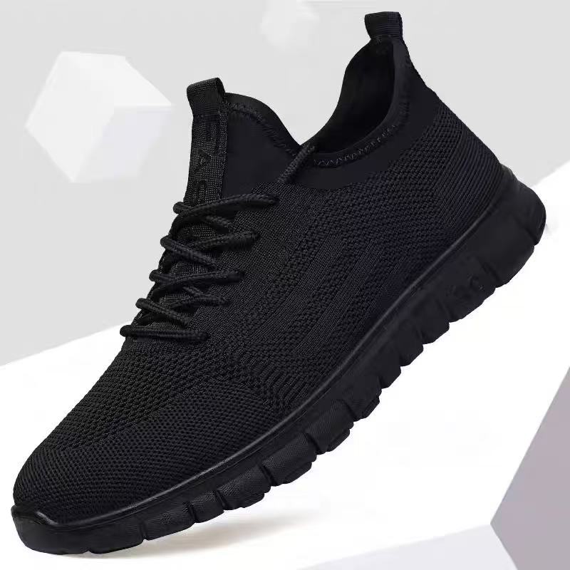 全黑色透气网布鞋 2025年秋季 软底舒适轻便工作运动休闲鞋 男鞋 新款
