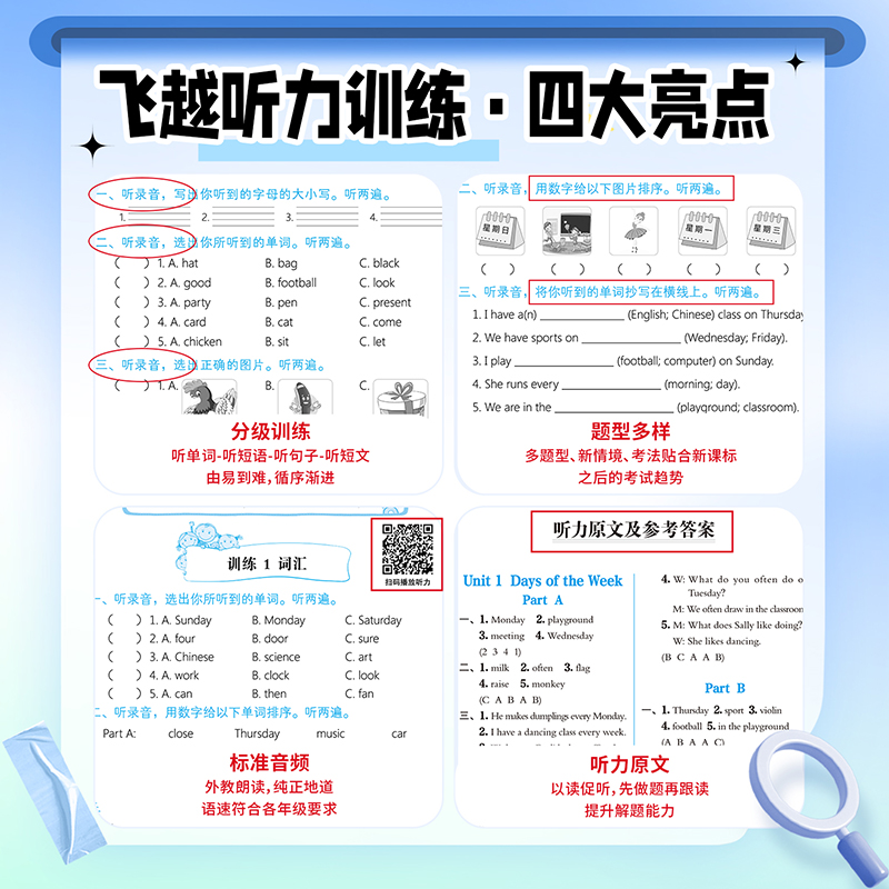 飞越听力飞越阅读2025英语听力专项训练三四五六年级上下册人教pep闽教join 小学英语周周测教材同步期末期中检测题练习册 in剑桥版