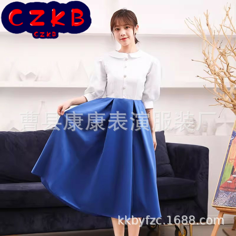 高中学生气质朗诵表演服装 大合唱演出服装 红歌比赛女长裙2021新款