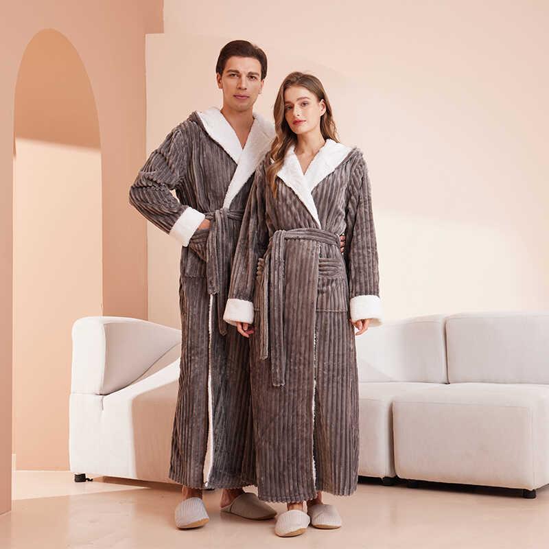 法兰绒连帽浴衣秋冬保暖浴袍情侣北1009c 睡袍男冬季 秋冬冬季 长款