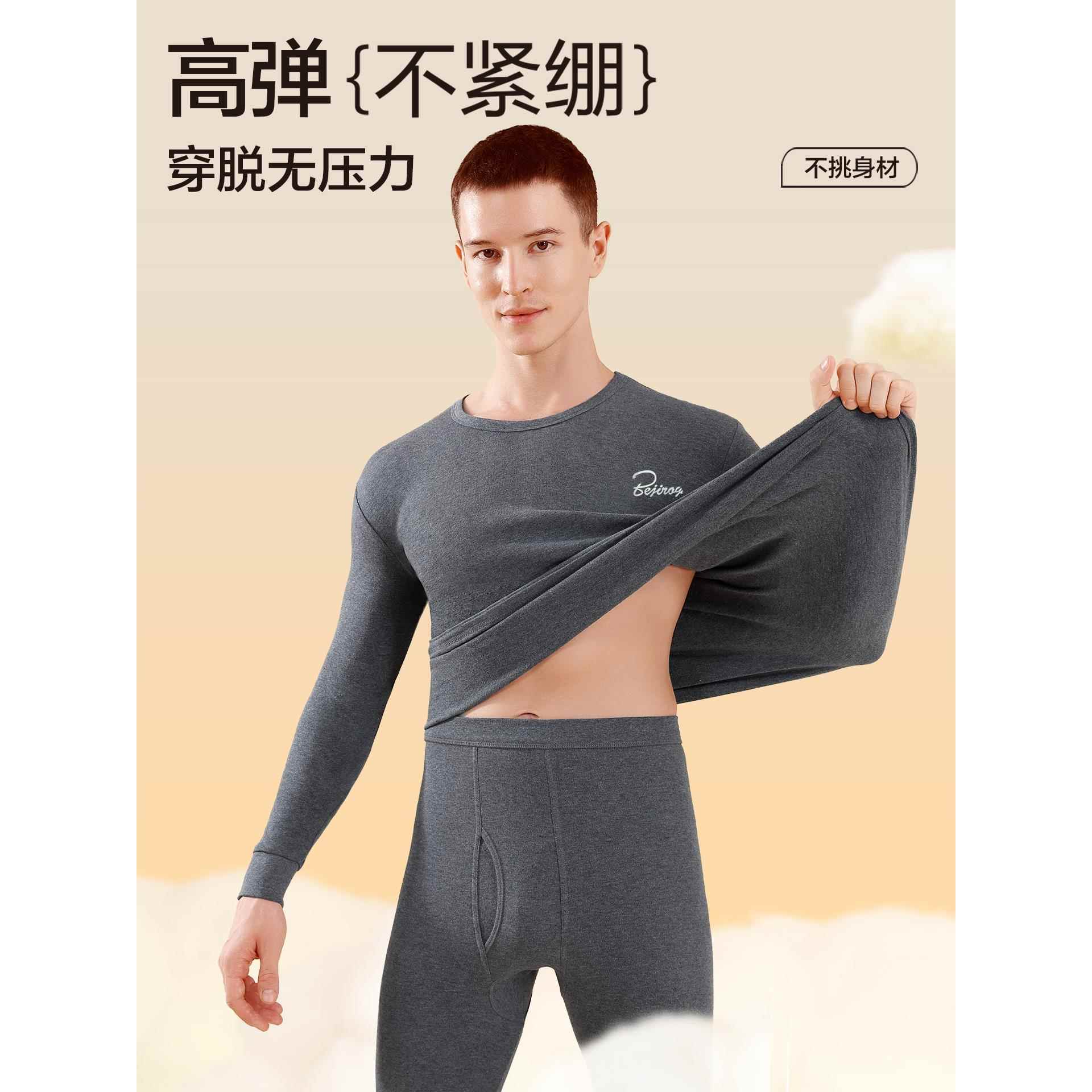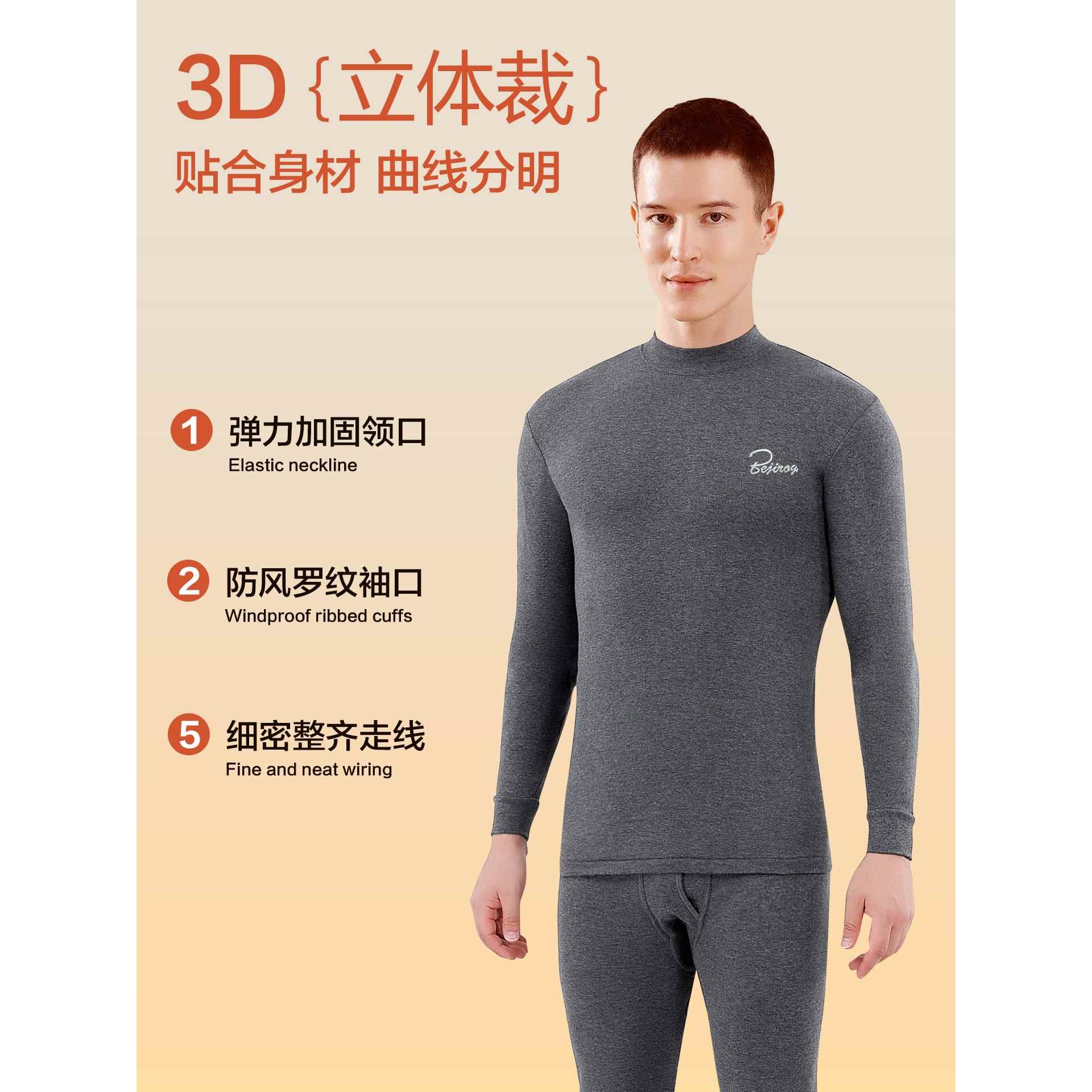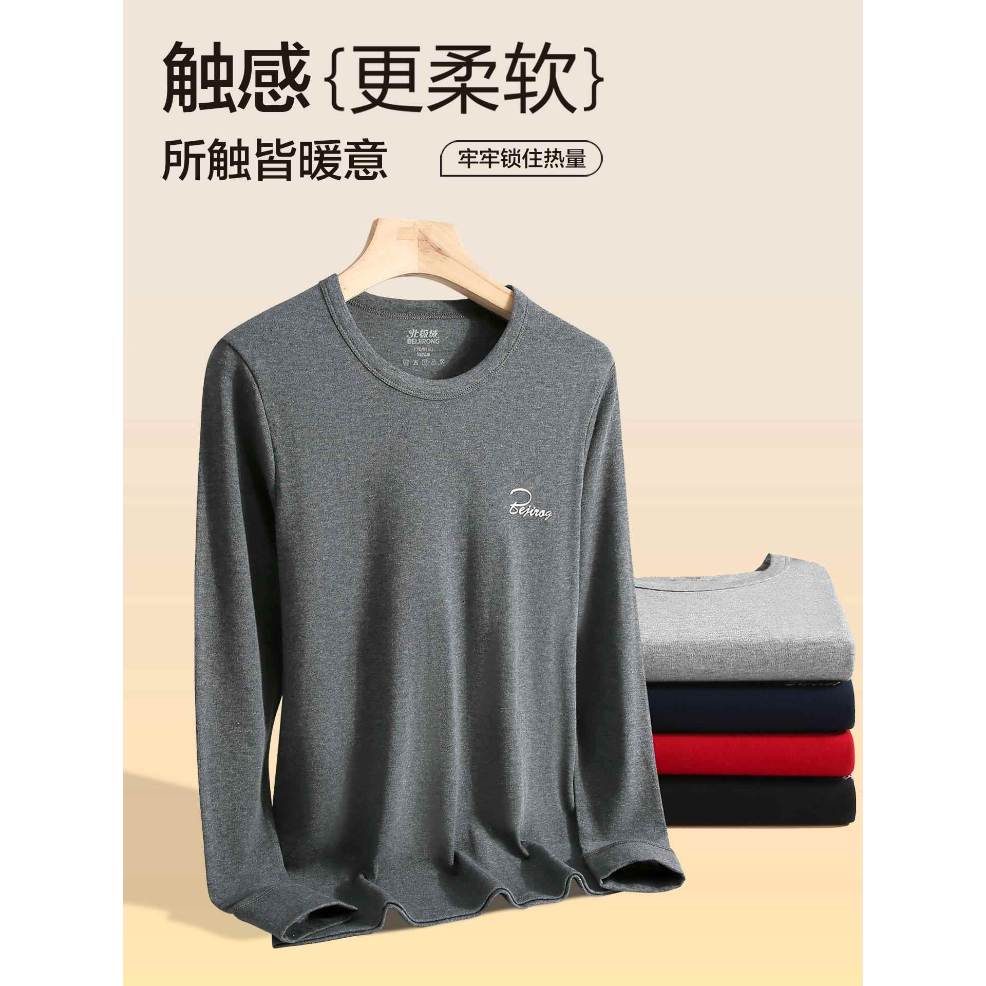 打底保暖内衣单件上衣冬季 男款 纯棉中高领全棉毛衫 秋衣男士