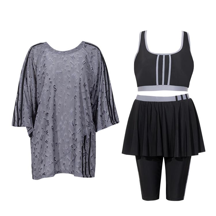 裙式 大码 保守遮肚显瘦泳衣女款 罩衫 1005c 胖mm度假三件套分体半袖