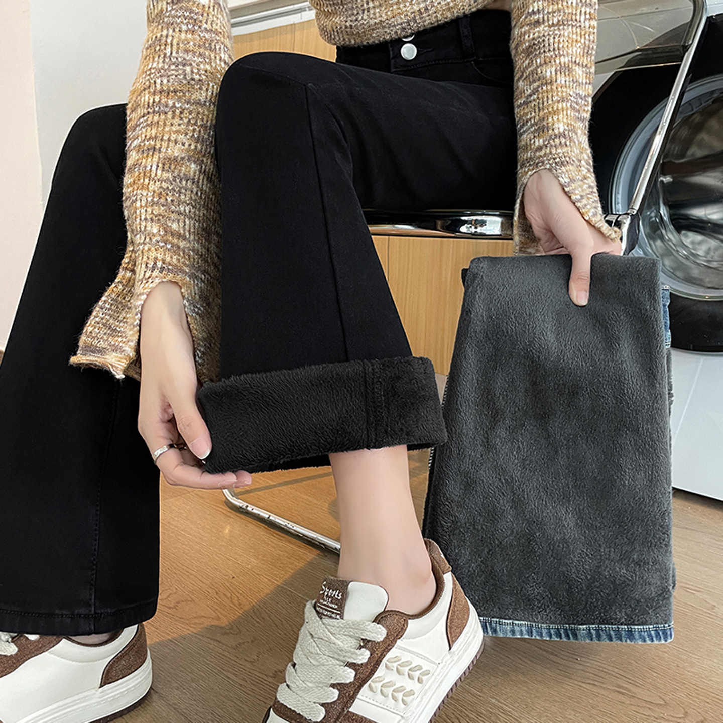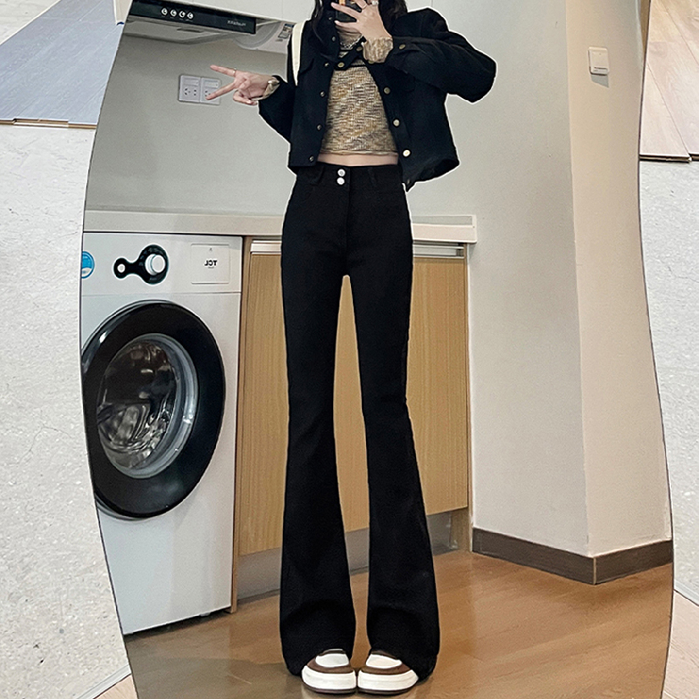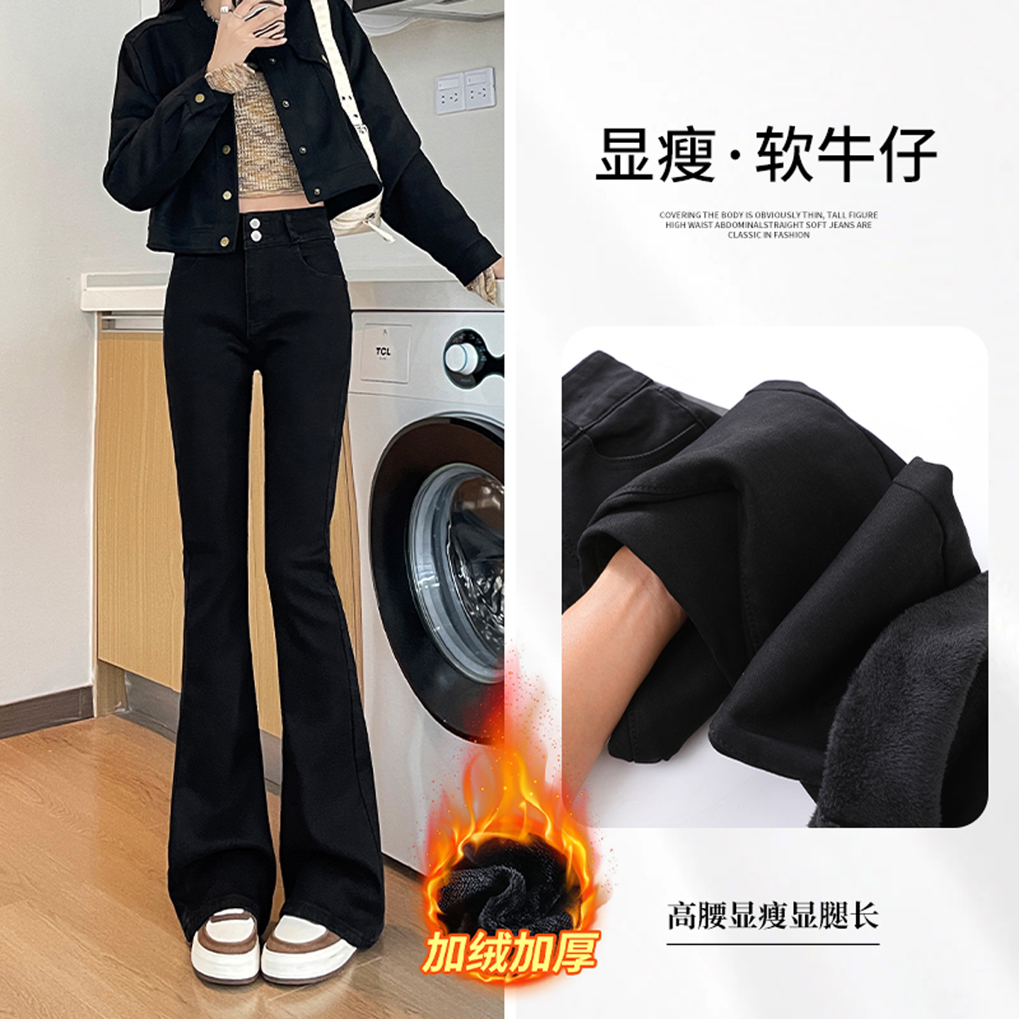拖地喇叭裤 黑色加绒微喇牛仔裤 窄版 秋冬四面弹高腰修身 女2025新款