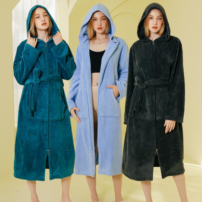 秋冬帽子睡袍男冬加绒浴袍加厚连体睡裙女拉链浴衣防风帽浴1009c