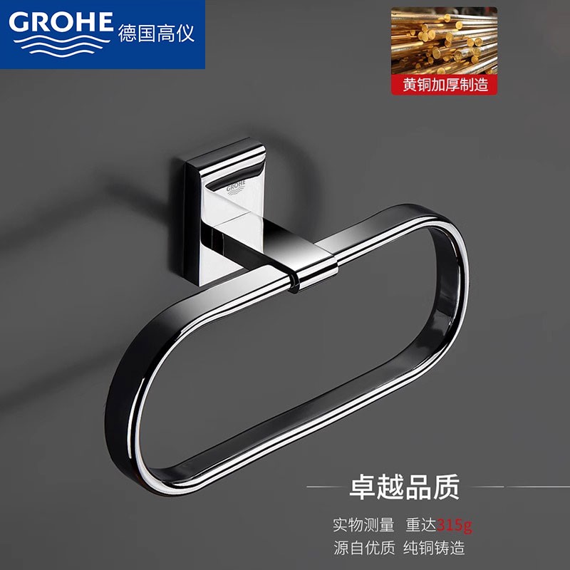 德国高端全铜毛巾吊环免打孔卫生间浴室擦手巾挂环圆形毛巾架挂圈
