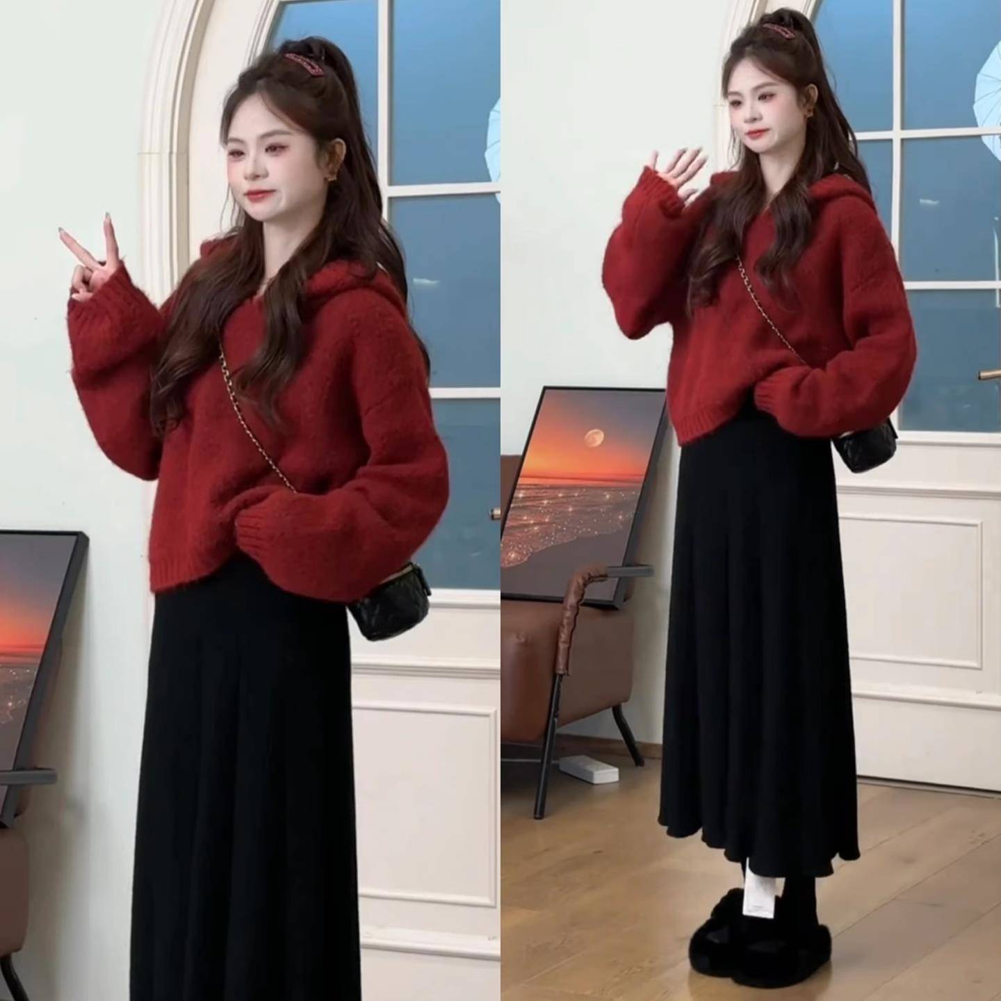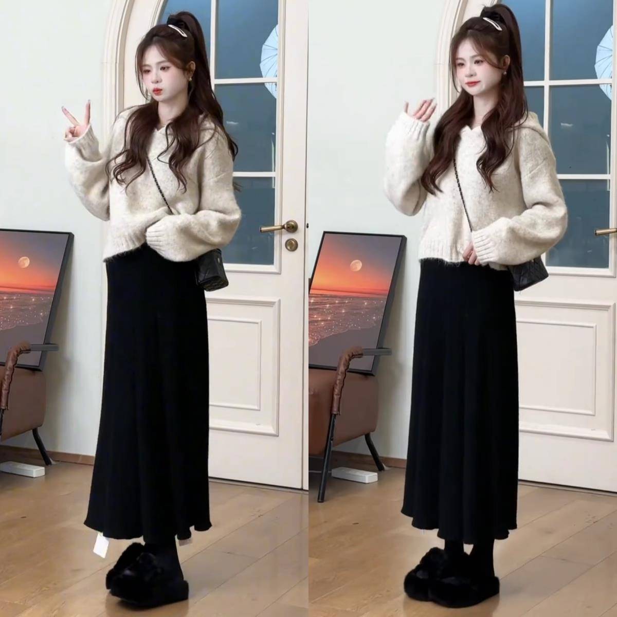 黑色针织衫 内搭打底衫 上衣胖mm秋冬 软糯慵懒风毛衣女2025新款 大码